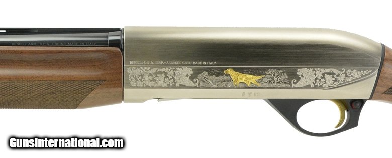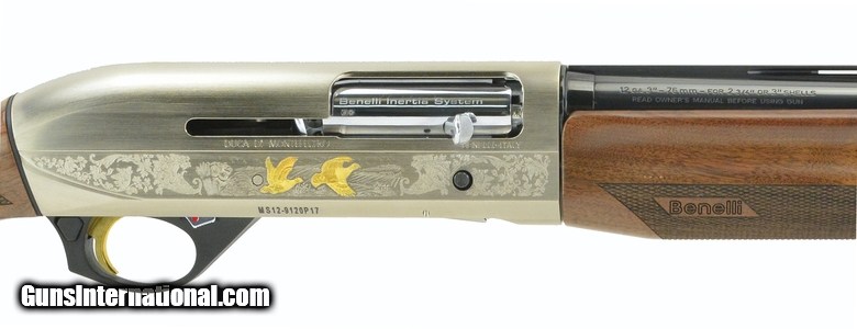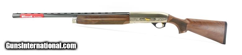 Benelli Duca Di Montefeltro 12 Gauge shotgun. 28” Barrel, AA grade satin walnut, nickel receiver with gold inlays and blued barrel, case, and 5-chokes. New!