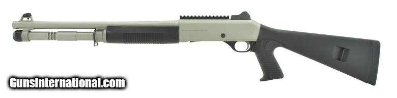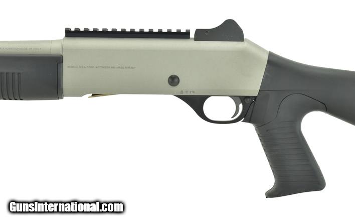 Description: Benelli M4 12 Ga Shotgun. 18 ½” Barrel, black stock, titanium cerakote finish, pistol grip, ghost ring sight, 5+1 capacity. New.
