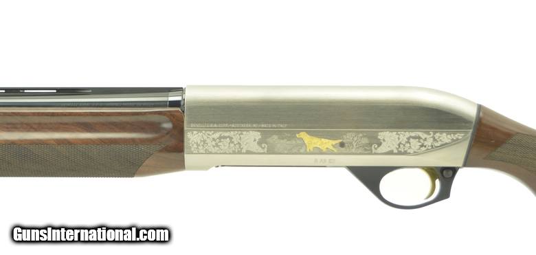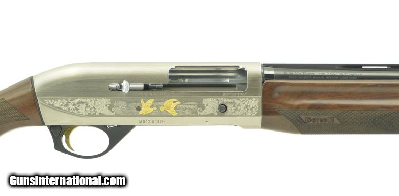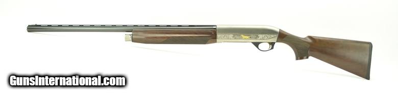 Description: Benelli Montefeltro 12 Gauge shotgun. Duca De Montefeltro deluxe auto loader with gold inlayed silver receiver and deluxe walnut. Excellent condition with case.