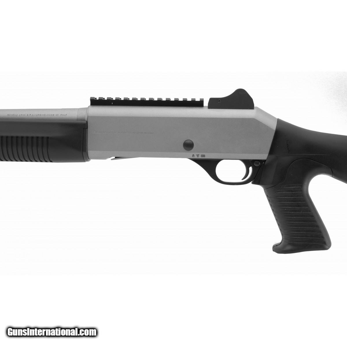 Description: " Benelli M4 12 Ga Shotgun. 18 ½" Barrel, black stock, titanium cerakote finish, pistol grip, ghost ring sight, 5+1 capacity. New. SOLD |