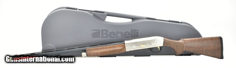 Description: Benelli Duca di Montefeltro Tro Silver Featherweight 12 Gauge shotgun. 26” Barrel, satin walnut stock, nickel/blue receiver with etching, 5-chokes and case. New.
