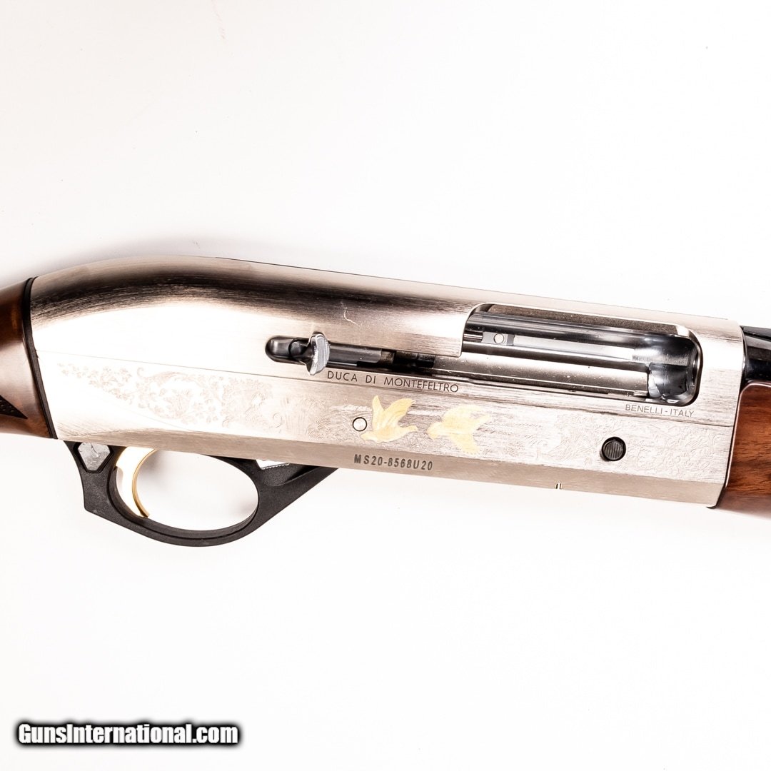 Description: Guns Listing ID: 522096 This Benelli Duca Di Montefeltro is chambered in 20 gauge with a 3\" chamber length. A 5 piece choke set, choke wrench, and a manual are included. SOLD Manufacturer: BENELLI Model: DUCA DI MONTEFELTRO Condition: Used - Certified Barrels: 26 BARREL Gauge Info: 20 GA Finish: SILVER AND BLACK |
