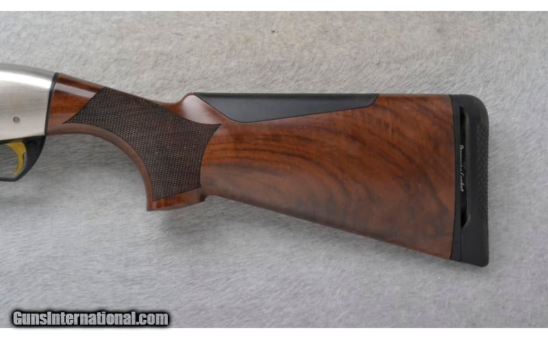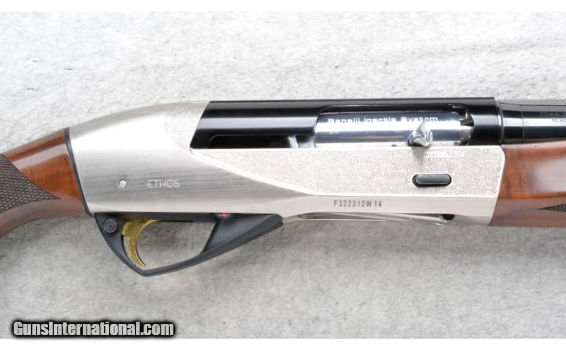 Description: This Benelli Model Ethos is a right hand semi-auto shotgun in 12 Ga. It has a 27.5 inch Criobarrel with a carbon fiber ventilated rib. A green high visibility front sight and metal middle bead sight. With a 3 inch chamber it comes with 4 choke tubes. The butt stock is a checkered grip hardwood pistol grip with a black rubber comb. The forearm is a checkered grip hardwood. The receiver is nicely engraved. 12 Gauge SOLD Chambers: 3 inch. Metal Condition: Excellent. A few minor handling marks. Wood Condition: Excellent. A few minor handling marks. Bore Condition: Shiny. Barrels: 27.5 inch Criobarrel with a carbon fiber ventilated rib. Stock Dimensions: LOP 14 1/4 inches. Fore End: Checkered grip hardwood. Butt Pad: Progressive Comfort black rubber recoil pad. Weight: 6 lb. 8 oz. Sights: Green high visibility front. Metal middle. Chokes: Comes with 4 choke tubes. Item Location: Richfield, WI |