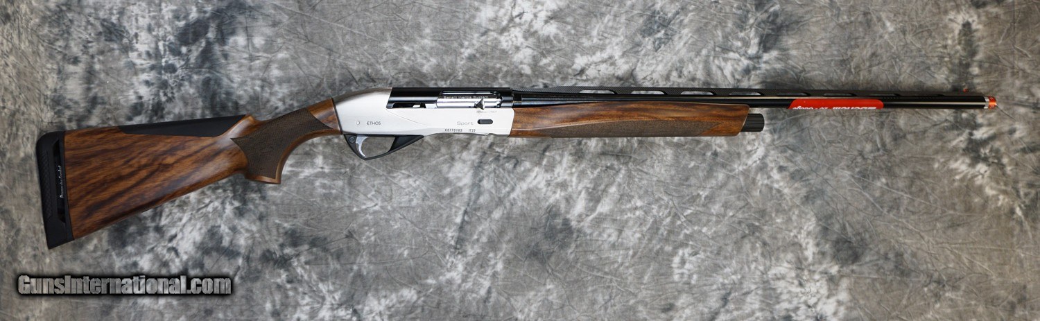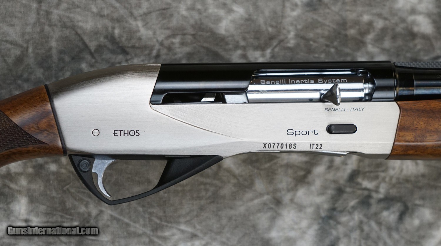 Description: New Benelli Ethos Sporting 20GA with 28" factory extended choke tubed barrel, stepped carbon fiber rib, factory ported. Nickel finished two-piece action, factory pistol grip stock with Progressive Comfort recoil reducer and soft-comb, sporting forearm. Includes case, chokes and tools. SOLD Shotgun Gauge: 20 Gauge |