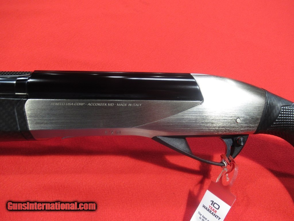 Description: New addition to Benelli's sporting clays lineup the Ethos Super Sport: carbon fiber stock and forend, satin nickel receiver, gloss blue finish on the barrel, wide target style rib that is made out of carbon fiber, steel mid bead with fiber optic front post, ported barrel, Comfort Tech 3 recoil reduction system, beveled loading port, five extended choke tubes, shims to adjust drop and cast, factory hard case SOLD |