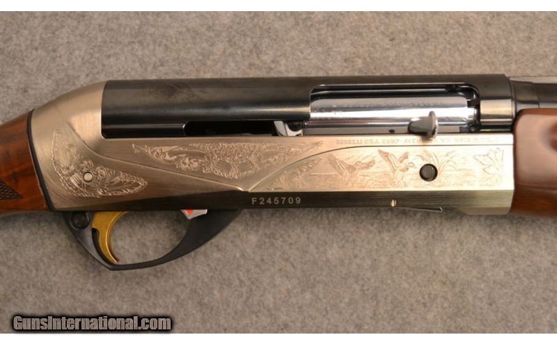 Description: This is a Benelli Legacy chambered in 12 ga. with a 28 inch vent rib barrel. The barrel, bore, finish, receiver and stock are all in excellent condition. The gun comes with a hard case and a set of 5 choke tubes. SOLD Caliber Info: 12 Ga. Chambers: 2 3/4 and 3 inch, semi-auto. Metal Condition: Excellent. Wood Condition: Excellent. Bore Condition: Excellent. Barrels: 28 inch with vent rib. Triggers: Single gold. Stock: Checkered walnut with pistol grip. Stock Dimensions: LOP 14 1/2 inches. Fore End: Matching walnut with checkering and finger grooves. Butt Pad: Solid black rubber pad. Weight: 7 Lbs. 2 Oz. Sights: Fiber optic front sight and mid bead on vent rib. Chokes: Screw in, improved cylinder. Extras: Comes with a hard case and set of 5 choke tubes. Item Location: Rogers, AR |