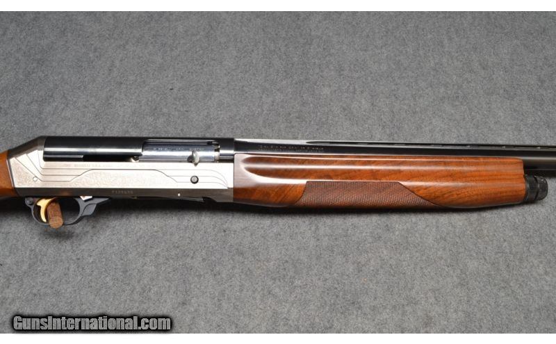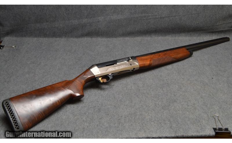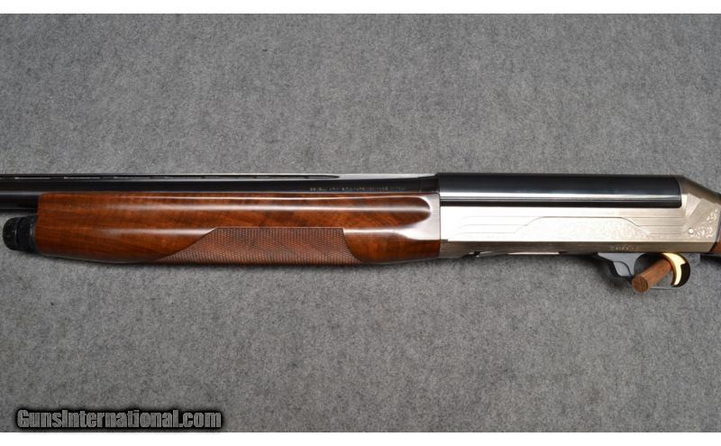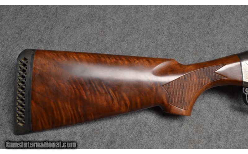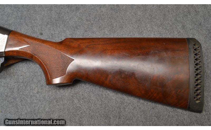 Description: This semi-automatic shotgun is a Benelli Legacy, chambered in 12 GA. It has a 26" blued steel barrel with a vented rib, finished walnut furniture with checkered hand grips, and a 1" black rubber recoil pad. This Benelli Legacy is in very good condition with a few signs of wear and use. Comes with a box. SOLD Caliber Info: 12 GA. Chambers: Semi-automatic shotgun. Metal Condition: Very good. A few signs of use and wear. Wood Condition: Very good. A few signs of use and wear. Bore Condition: Bright. Barrels: 26" blued steel barrel with vented rib. Triggers: Single metal trigger. Stock: Finished walnut butt stock with checkered grip. Stock Dimensions: 14-1/2" LOP, 1-3/4" DAC, 2-1/2" DAH. Fore End: Finished walnut fore end with checkered hand grips. Butt Pad: 1" black rubber recoil pad. Weight: 7lbs-4oz. Sights: Fiber optic front bead sight. Chokes: Improved modified choke in the barrel. Extras: Comes with a box. Item Location: Wichita, KS |