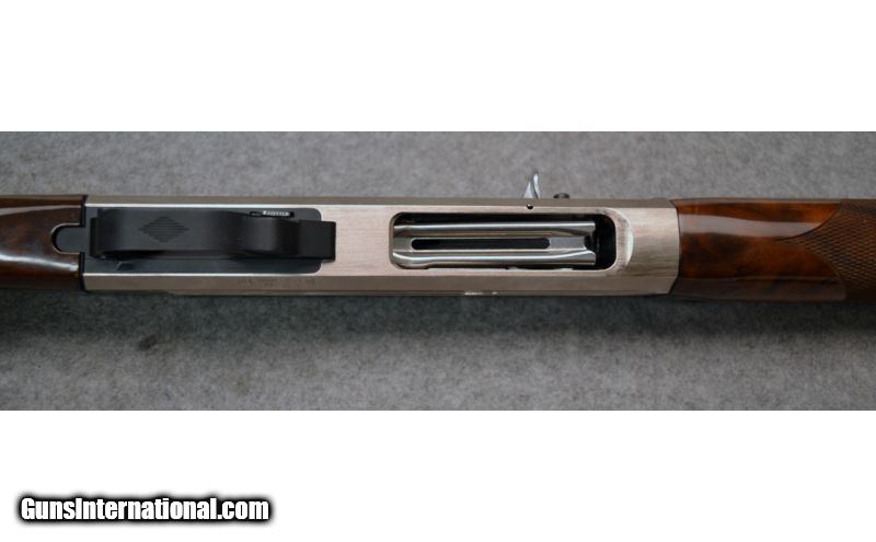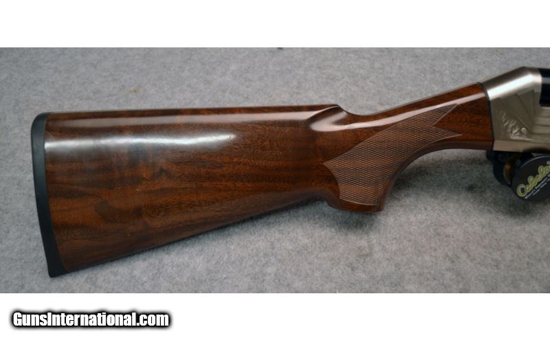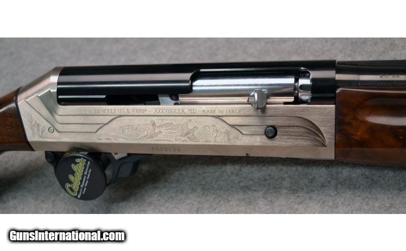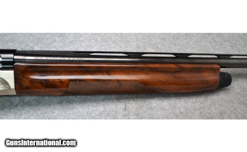 Description: This shotgun is in excellent condition overall, with a couple of small dings on the stock on both sides, a couple of dings on the right side of the fore end, and a scuff mark on the left side of the recoil pad. The factory case is included. SOLD Manufacturer: Circa 2000 Caliber Info: 20 Gauge Chambers: 2 3/4", 3 Metal Condition: Excellent with nice engraving Wood Condition: Excellent with defects as noted Bore Condition: Excellent Barrels: 24" Barrel Stock: High gloss wood with a couple of small dings Stock Dimensions: 14" LOP Fore End: Checkered wood with finger grooves and a couple of dings on right side Butt Pad: Black rubber Benelli recoil pad with 1 scuff on left side Sights: Front red fiber optic bead, mid bead on ventilated rib Chokes: Modified choke tube installed Item Location: Christiana, DE |