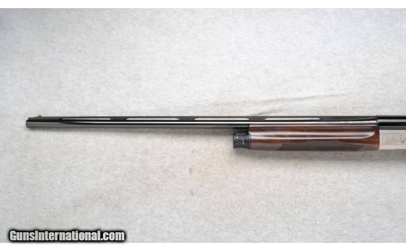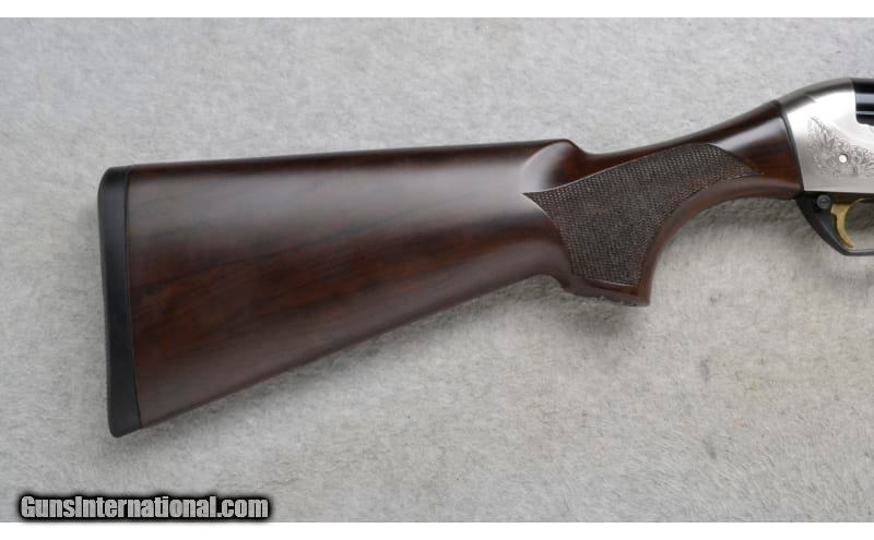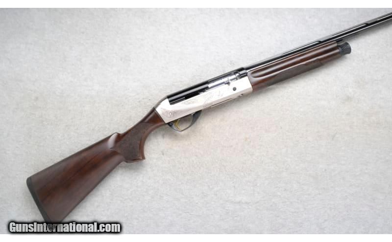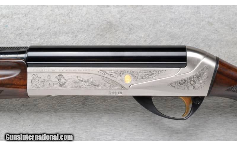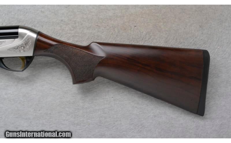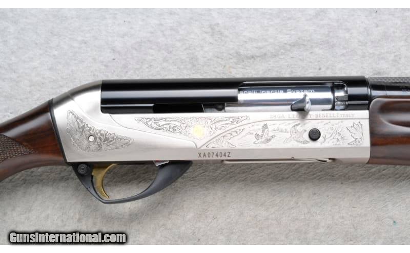 Description: This Benelli Model Legacy is a right hand semi-auto shotgun in 28 Ga. It has a 25.5 inch Criobarrel with a carbon fiber ventilated rib. A red high visibility front sight and a metal bead middle sight. With a 2 3/4 inch chamber it takes choke tubes. The butt stock is a checkered grip hardwood pistol grip. The forearm is a checkered grip hardwood with finger grooves. The coin finished receiver is very nicely engraved with scroll and has game birds in flight in an outdoor scene. 28 Gauge SOLD Chambers: 2 3/4 inch. Metal Condition: Excellent. Wood Condition: Excellent. Bore Condition: Bright and shiny. Barrels: 25.5 inch Criobarrel with a carbon fiber ventilated rib. Stock Dimensions: LOP14 1/4 inches. Fore End: Checkered grip hardwood with finger grooves. Butt Pad: Benelli black rubber recoil pad. Weight: 5 lb. 4 oz. Sights: Red high visibility front. Metal middle bead. Chokes: Comes with choke tubes. Item Location: Richfield, WI |