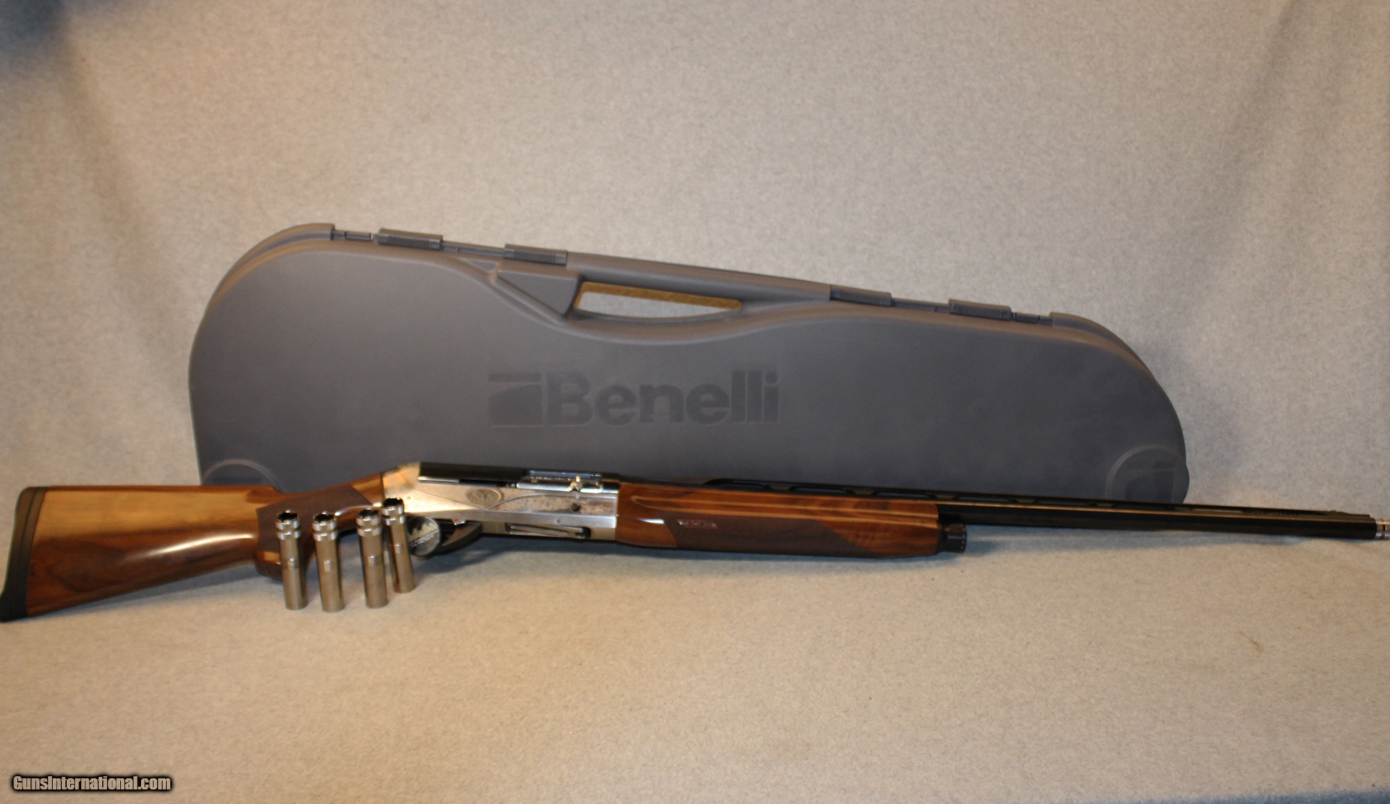 Description: This is a Benelli Legacy Sport shotgun with a 30" barrel in 12 gauge. The stock has tiny handling marks, but nothing that has damaged the finish of the stock. The metal is in outstanding condition, with the engraving clear and crisp. Overall, this shotgun is in excellent condition and comes with its original hard case and four extra chokes, as pictured. 12 Gauge SOLD Barrels: 30 inch Weight: 6 lbs Item Location: Hazelwood, MO |