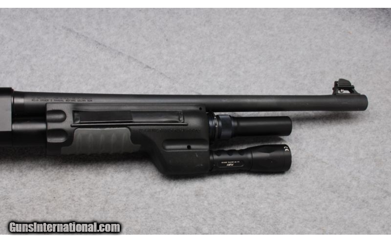 Description: This is a Benelli M2 Tactical shotgun in 12 Gauge with a 3 inch chamber. It has the pistol grip stock, a SUREFIRE fore end with a SUREFIRE light, and Benelli's ghost ring sights. It has the usual Benelli features-Inertia Drive, ComforTech, and the Crio choke tube system with a Full choke tube only included. Condition of the metal is Very Good with the barrel Excellent and the action showing some vertical scratches on the sides. The bore is bright and shiny, and the stock is Excellent. SOLD Caliber Info: 12 Gauge Chambers: 3 Metal Condition: Very Good Bore Condition: Bright and Shiny Barrels: 18.5 Stock: Pistol Grip Stock Dimensions: LOP 14 Fore End: SUREFIRE Fore End with SUREFIRE Light Butt Pad: ComfroTech Pad Weight: 6.7 Pounds Sights: Ghost Ring Sights and ReeiverDrilled and Tpped for Scope Bases Chokes: Crio System-Full Choke Tube Included Item Location: Reno, NV |