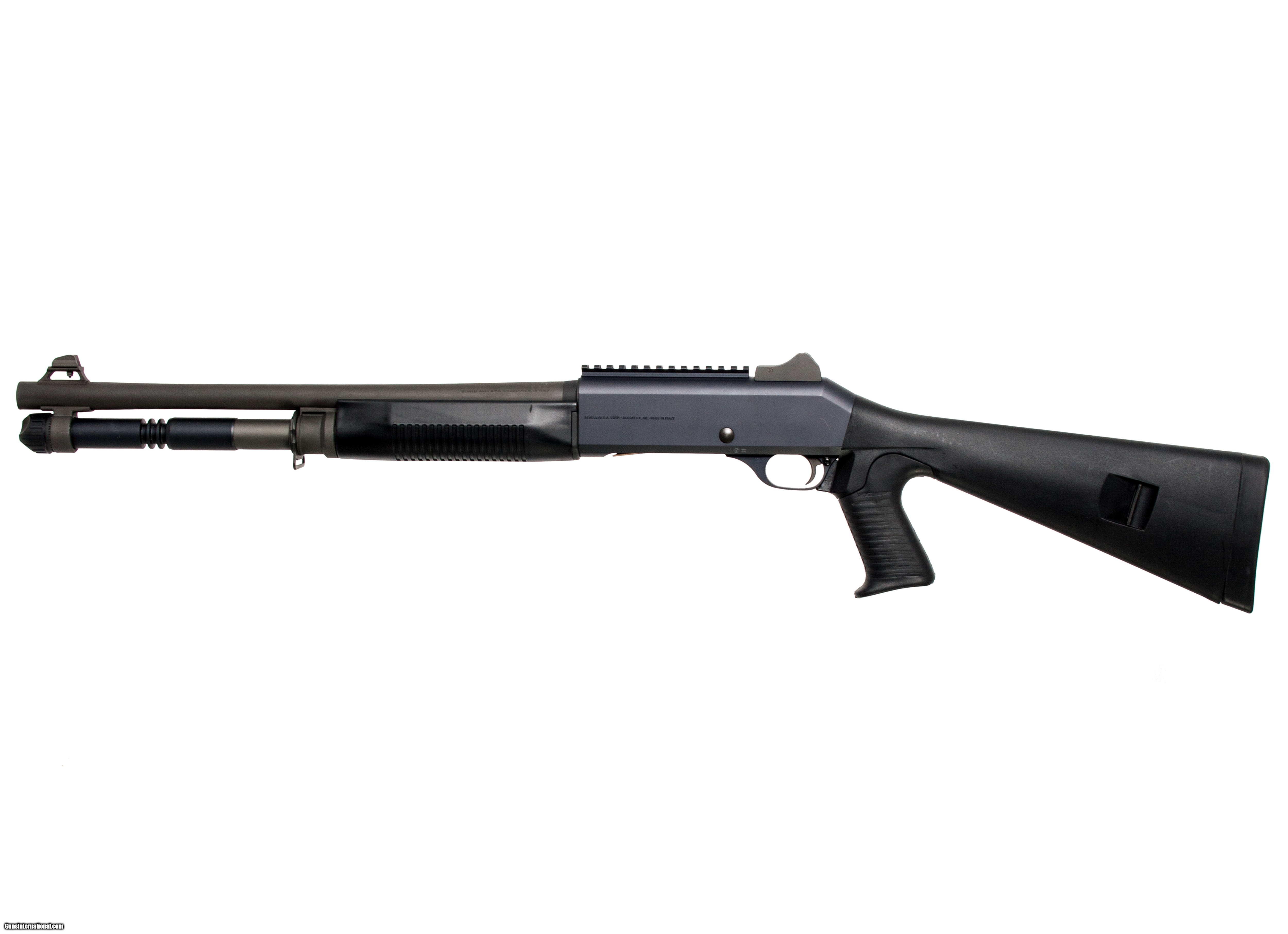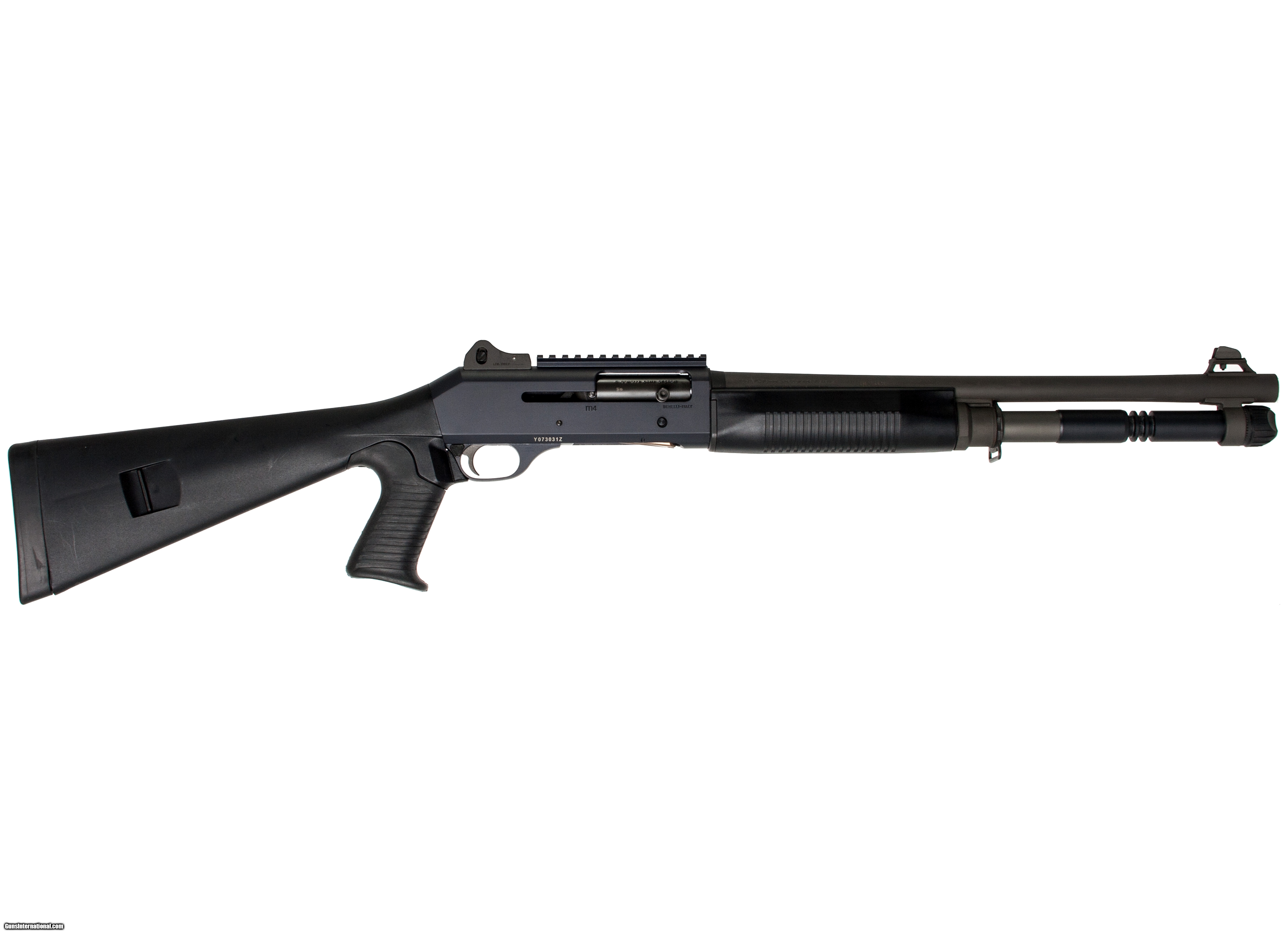 Benelli M4 in 12 ga with an 18.5 inc barrel ghost ring iron sights. This gun is in excellent condition and is covered by Dury's Lifetime Warranty.