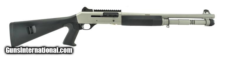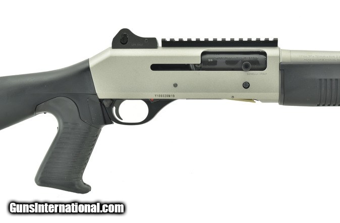 Description: Benelli M4 12 Gauge shotgun. 18½” Barrel, H20 titanium cerakote finish, pistol grip, ghost ring sight, Picatinny rail and 5+1 capacity. New.