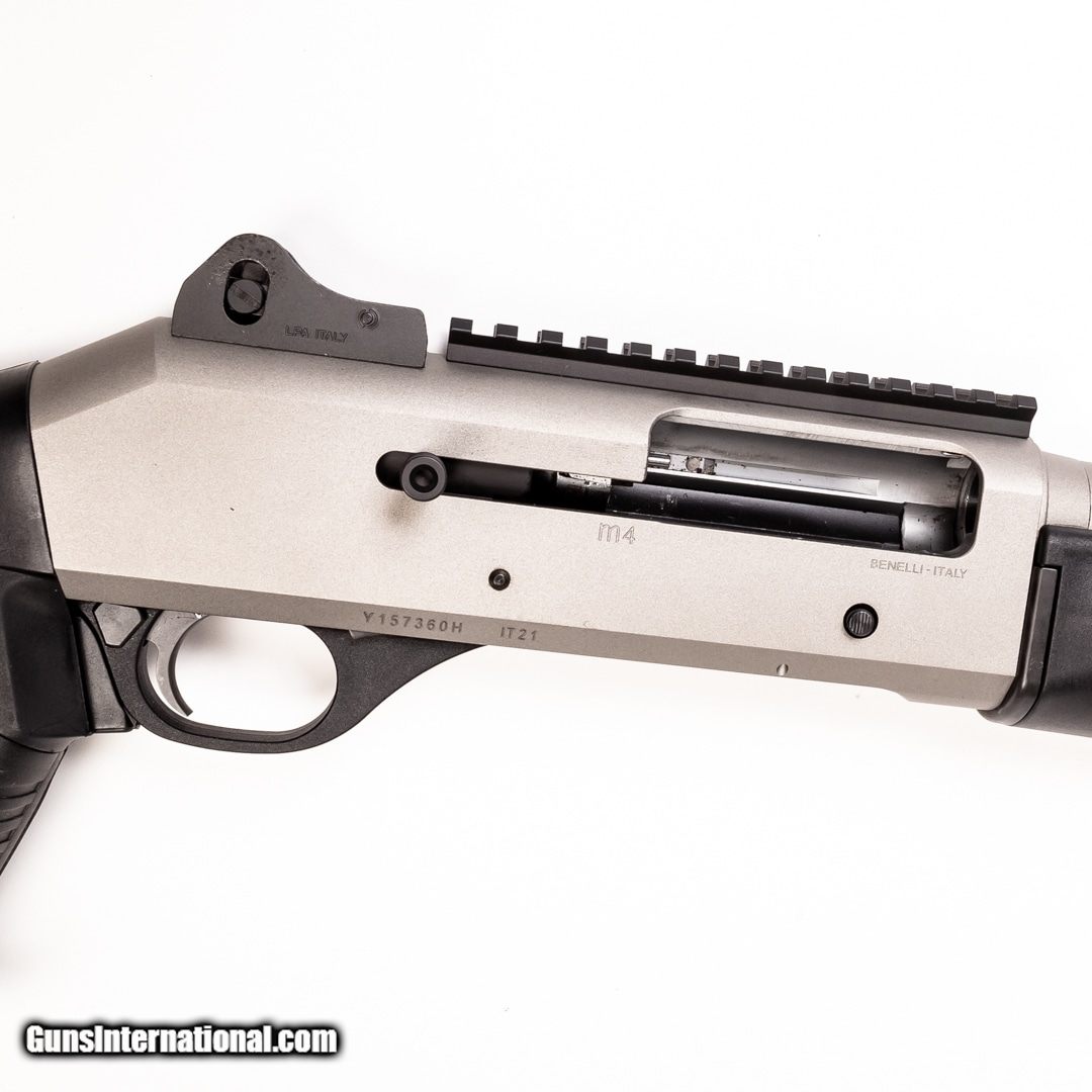 Description: Guns Listing ID: 497622 A favorite among the Marine Corp. since 1998, the Benelli M4 H2O is a semi-automatic shotgun that‚‚s been tested and approved over time. It features the A.R.G.O gas system that is unbelievably smooth as well as reliable. This is a great option for duty use and home defense. The finish is a custom water-resistant coating that is developed by Benelli. This M4 H20 has a 3\" chamber, modified choke tube, and a rear peep sight. The owner‚‚s manual and a wrench are include SOLD Manufacturer: BENELLI Model: M4 H2O Condition: Used - Certified Barrels: 18 BARREL Gauge Info: 12 GA Finish: TITANIUM GRAY CERAKOTE |