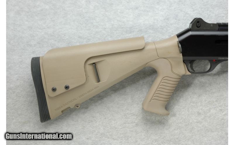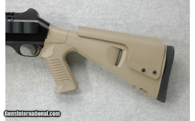 Description: SOLD Caliber Info: 12 GA Chambers: 2 3/4 inch or 3 inch. Metal Condition: Excellent with a few minor scuffs. Bore Condition: Bright and shiny. Barrels: 18 inch satin black. Stock: Tan textured rubber full pistol grip. Tan polymer butt with adjustable comb. Stock Dimensions: LOP 12 1/2 inches. Fore End: Vertical serrated tan polymer. Butt Pad: LimbSaver rubber recoil pad. Weight: 8 lbs. 15 oz. Sights: Raised adjustable front blade with white dot and protective ears. Adjustable peep rear. Chokes: Tube Extras: Top rear accessory rail includes left side 8 shell holder. Item Location: Richfield, WI |