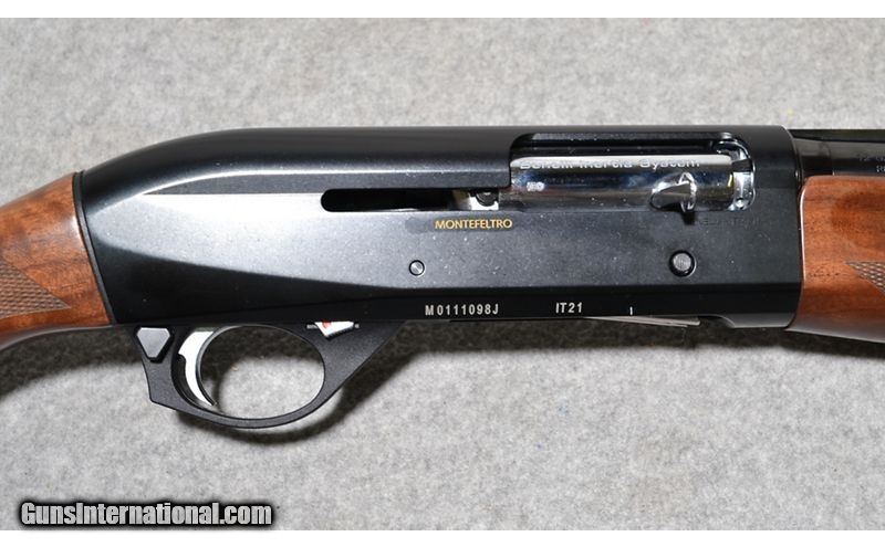 Description: Benelli model Montefeltro in 12 gauge with 26" barrel, three inch chamber, and vent matte ribbed barrel with single fiber optic bead. Bore is bright with no dings, dents, rings, or bulges. Action and barrel are in excellent condition. Checkered walnut stock and fore end are in excellent overall condition. Includes factory box, paperwork, plug, choke tube wrench, and three choke tubes. 12 Gauge SOLD Chambers: Three inch chamber. Metal Condition: Action and barrel are in excellent condition. Wood Condition: Walnut checkered stock and fore end are in excellent overall condition. Bore Condition: "Bright bore with no dings, rings, dents, or bulges. Barrels: 26" barrel. Triggers: Smooth trigger. Stock Dimensions: "14 1/2"" LOP, 1 3/4"" DAC, 2 1/2"" DAH Fore End: Checkered walnut stock and fore end. Butt Pad: Factory black rubber recoil pad. Weight: 6 lb 13 oz Sights: Vent matte rib with red fiber optic bead. Chokes: Factory screw in chokes. Item Location: Mitchell, SD |