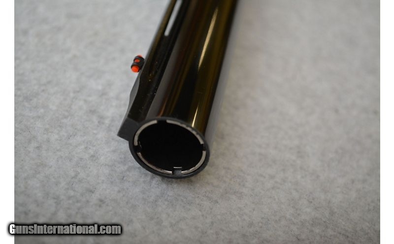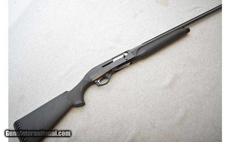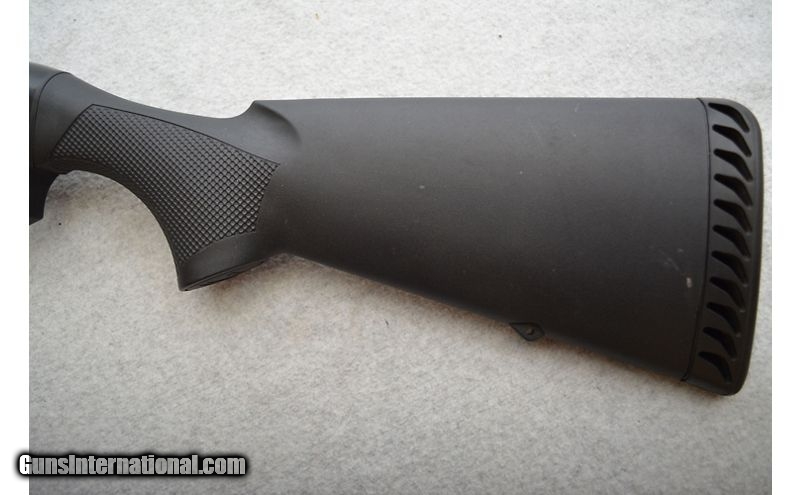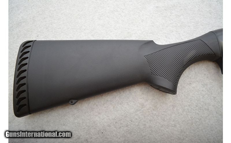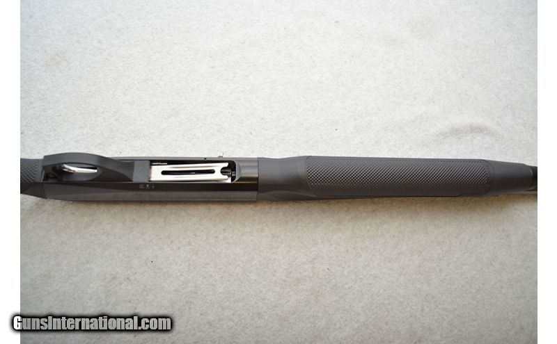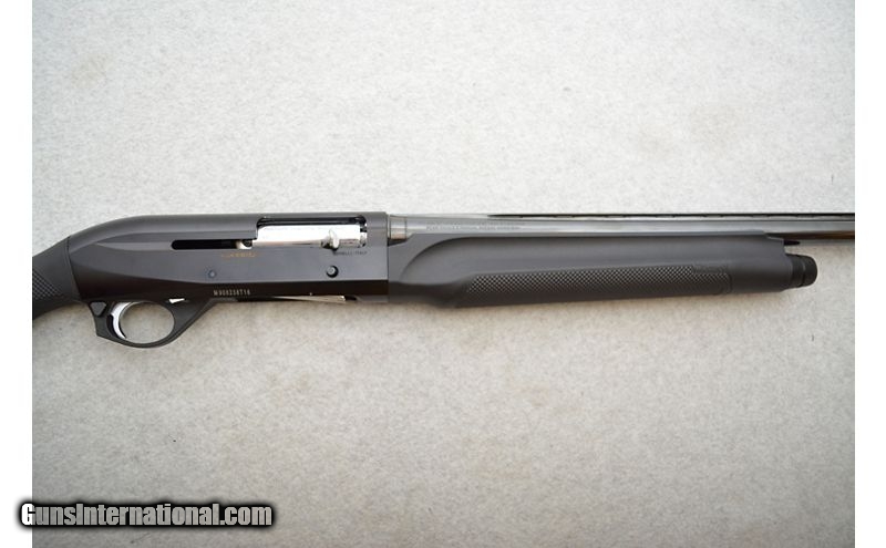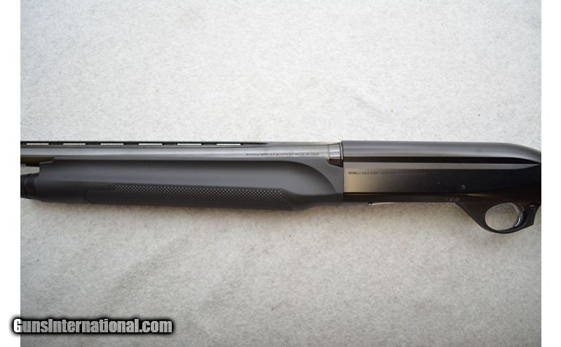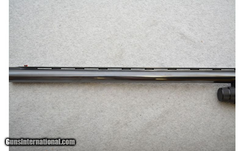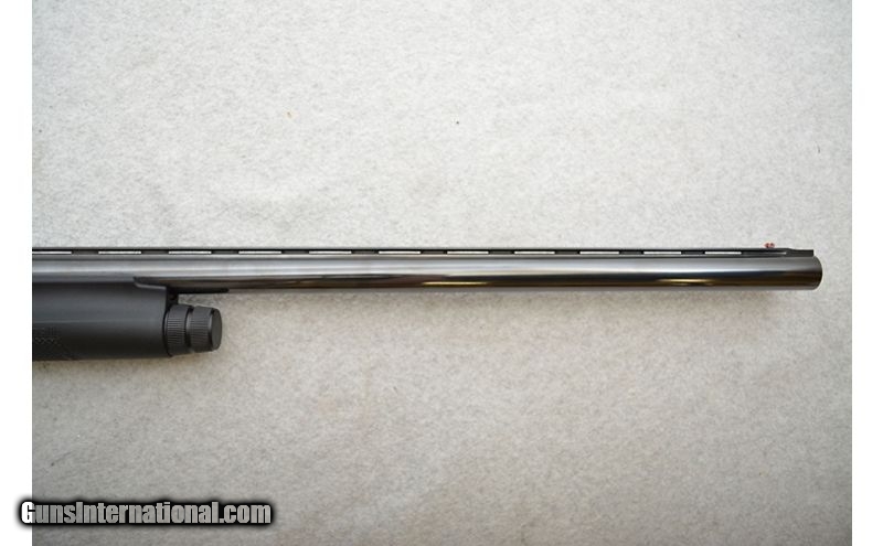 Description: Good shape overall with some cosmetic damage. The metal is rust free but there are a few light marks here and there on it. There are a few faint surface scratches on the left side of the barrel towards the muzzle. These are so shallow that they proved to be too difficult to photograph and can just barely be felt as one runs a fingernail over them. The furniture is also in good shape but does show signs of use. The left side of the stock has handling marks. The worst damage is an area on the right side of the pistol grip just over an inch long and ¼ inch wide where the texturing looks to have been scraped off. The factory box is included but not pictured. 12 Gauge SOLD Chambers: Semiautomatic fed from a tubular magazine and chambering up to 3" shells. Metal Condition: Very good. Wood Condition: Furniture is in good condition. Bore Condition: Excellent. Barrels: 28" Gloss blued with ventilated rib. Triggers: Polished nickel plated with smooth face. Stock Dimensions: Matte black synthetic with 14¼" LOP. Fore End: Matte black synthetic. Butt Pad: Ventilated black rubber pad. Weight: 6lbs 12oz Sights: Red front light pipe. Chokes: An improved cylinder choke is included. Barrel accepts Criochokes. Item Location: Green Bay |