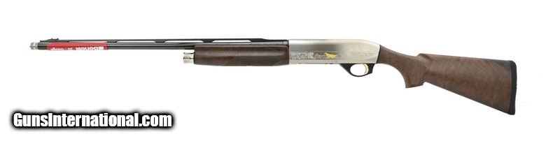 Benelli Montefeltro Featherweight 20 Gauge shotgun. NEW Montefeltro Silver Featherweight. 24” barrel, 5-chokes, nickleblue receiver, game scenes, and case.