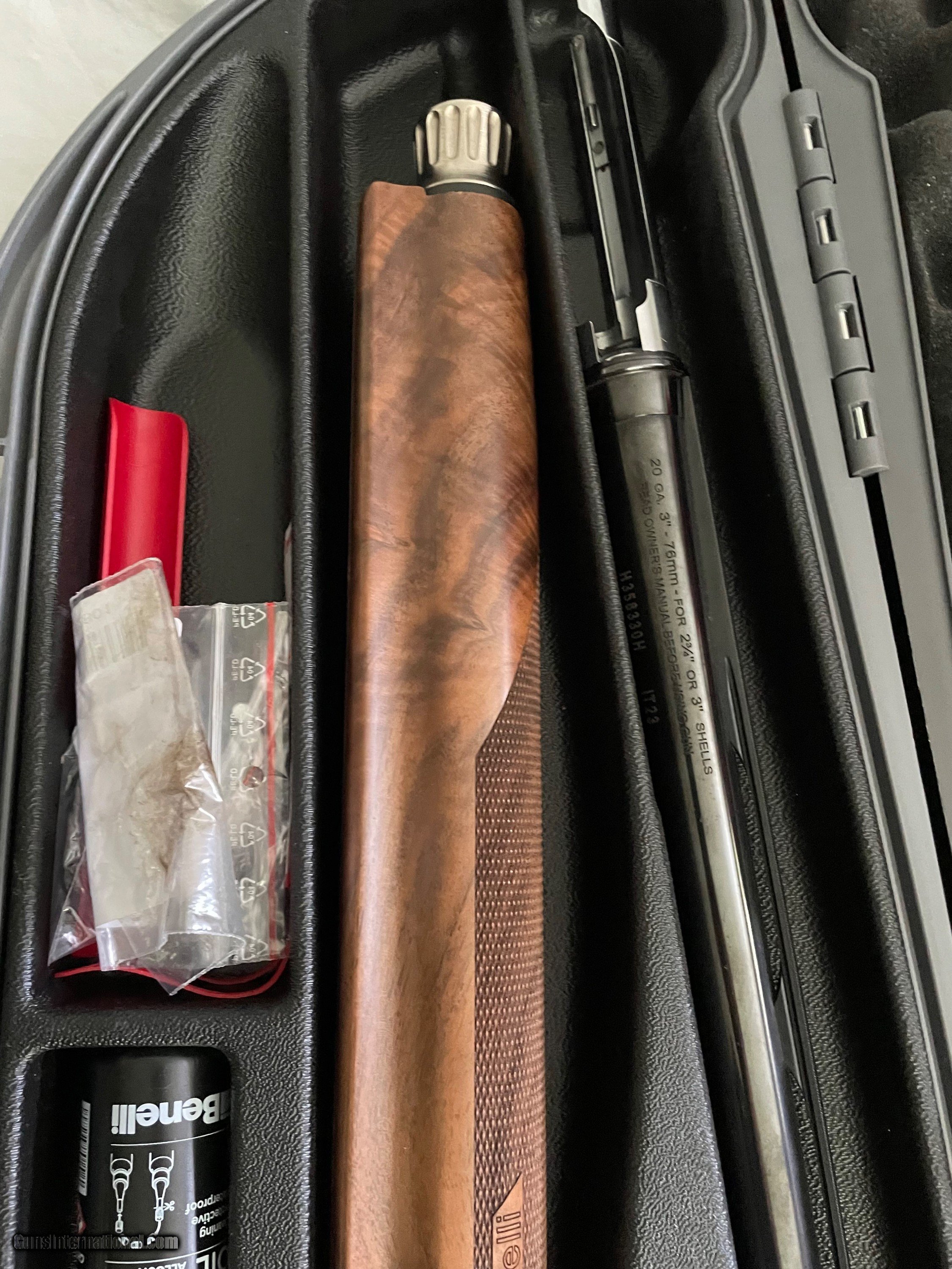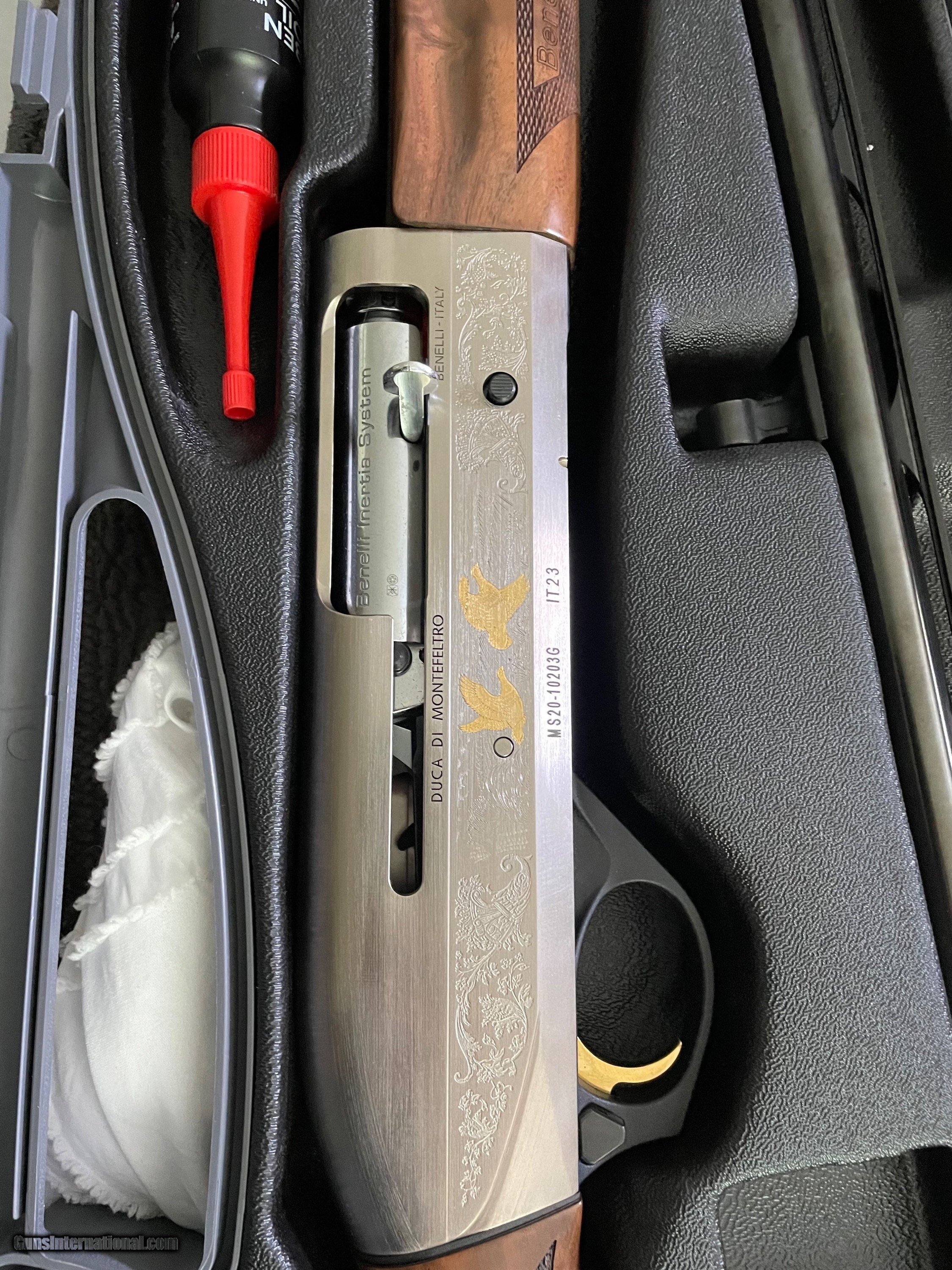 Description: Excellent condition Benelli montefeltro silver 20 gauge , 26 inch barrel all factory items which include 5 choke tubes and wrench ,shims ,oil ,manual . Amazing real walnut not laser enhanced or a print on plain wood . $1425.00 shipped to your FFL . SOLD Manufacturer: Benelli Model: Montefeltro silver Barrel Length: 26 Chambers: 3 Condition: Excellent Metal Condition: Excellent Wood Condition: Excellent Bore Condition: Excellent Barrels: Blued Barrel Type: Single Action: Semi suto Stock: Walnut Fore End: Walnut Chokes: Multi Engraving: Game scene with gold inlay Case: Abs Item Location: Lake Milton , Oh |