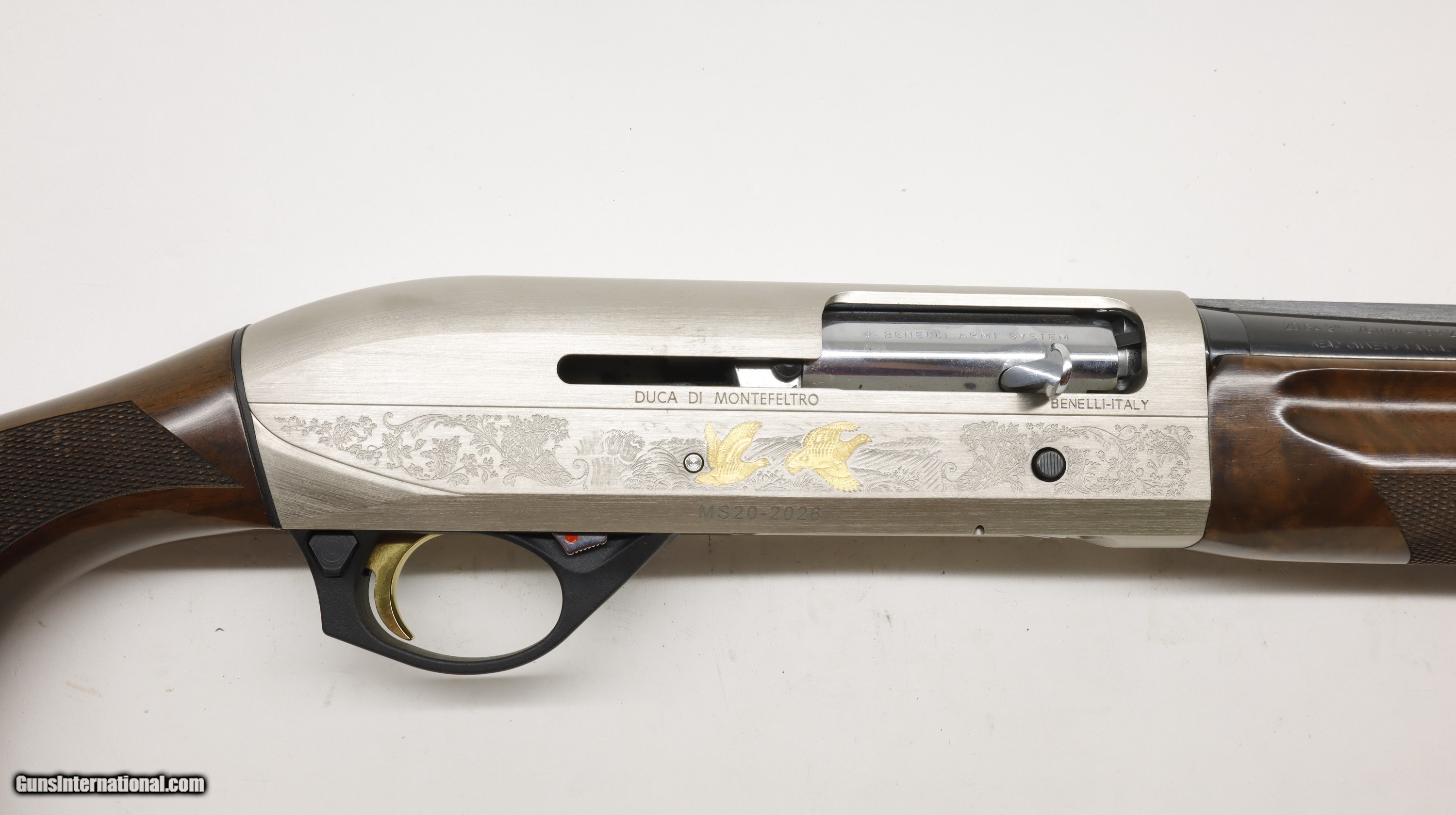 Description: Benelli Montefeltro Silver, 20ga, 26" with 5 factory chokes. SN is MS20-20xx. Comes in the factory hard case. Used gun, but has hardly been shot. Factory finish on both wood and metal, LOP is 13 3/4" with a Kickezz recoil pad. We will trade for silver and gold. We accept personal check, any certified funds, Ve-nmo or Ze-lle. We can also take your credit card, +3%. Email me if you would like these pictures sent to you, they will come through bigger and better than on the listing page here. We do offer Layaway. Our standard terms are 25% down, 90 days. Initial deposit is not refundable. Email me with any questions. Please check your local laws to confirm it is legal to own in your state! Buyer pays $30 shipping and insurance to your FFL in the lower 48. AK, HI or PR is extra. I will ship to California, as long as it is legal, NO PROBLEM! All my guns come with a non-firing, 3 day unconditional return privilege, from the day UPS delivers to your dealer. Buyer pays shipping both ways if the gun comes back. Please make sure to make it to your FFL to inspect within the 3 days. If your gun doesn't have a box or case we can add a new hard case by PLANO for secure shipping for $30 if the buyer wishes (highly recommended, cheap insurance, really helps keep the UPS monster from eating my guns!). I am a licensed FFL, and will include a copy of my FFL with the gun for your dealer’s records. I will ship to a C&R if the gun is eligible. I will ship to California, but you need to confirm the gun is legal where you are, California or other. WE BUY AND CONSIGN GUNS AND GUN COLLECTIONS! We will travel to pick up collections! I am always looking for good clean, old original Winchesters to buy, consign, or trade, especially Pre '64's model 70's and model 54's. WE ALSO TRADE FOR CLASSIC CARS AND TRUCKS! We also trade for gold and silver. SOLD Shotgun Gauge: 20 Gauge Manufacturer: Benelli Model: Montefeltro Silver Barrel Length: 26 Condition: Used in case |