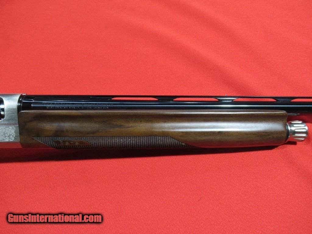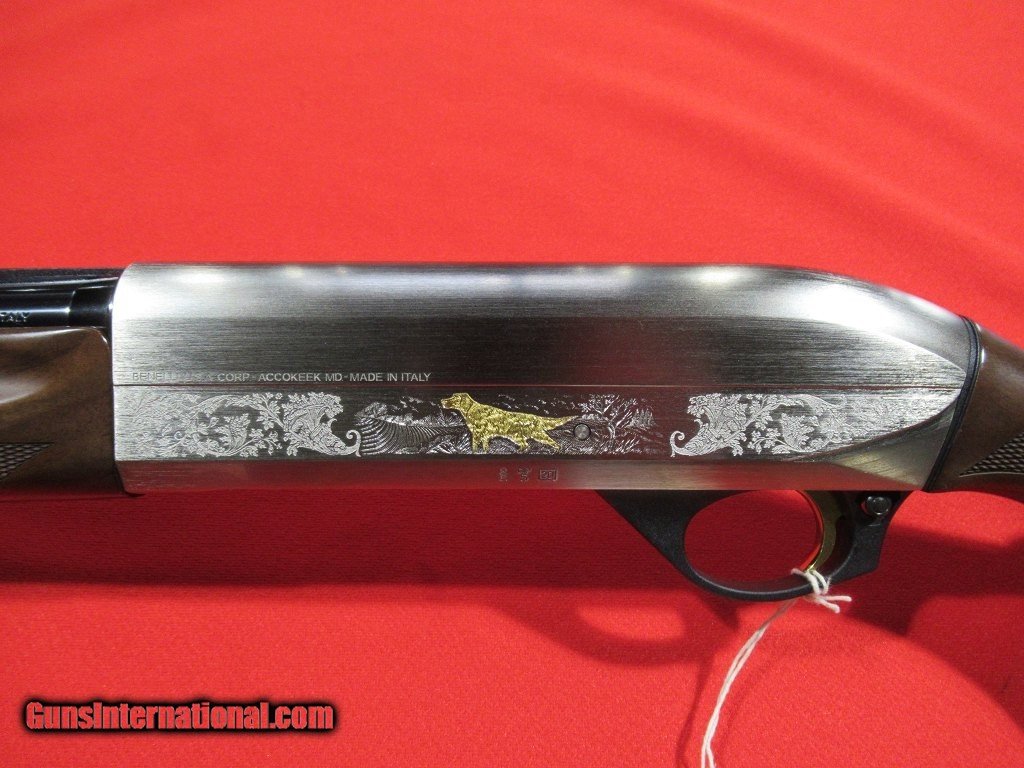 Description: New gun with game scene engraved silver receiver, nicely figured stock and forend, factory case with 5 choke tubes and instructions SOLD |