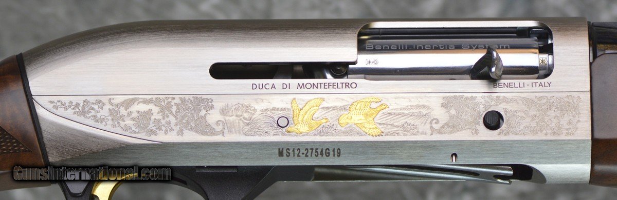 Description: New Benelli Montefeltro Silver Field 12GA with 28" factory choke tubed barrel, steel flat game rib. Nickel finished receiver with scroll engraving and game scenes in gold. Factory upgraded pistol grip field stock, field forearm. Includes factory case, chokes and tools. SOLD |
