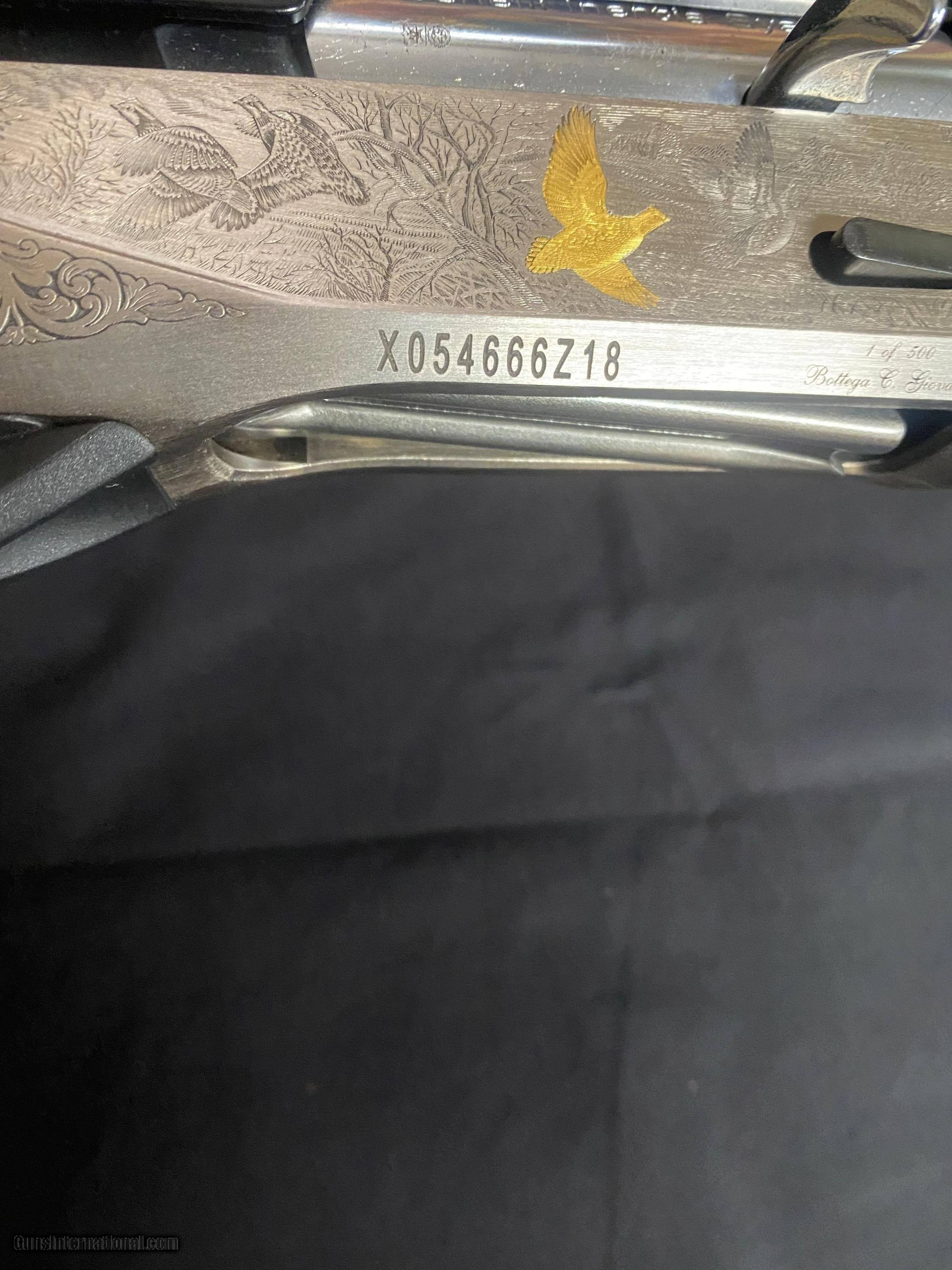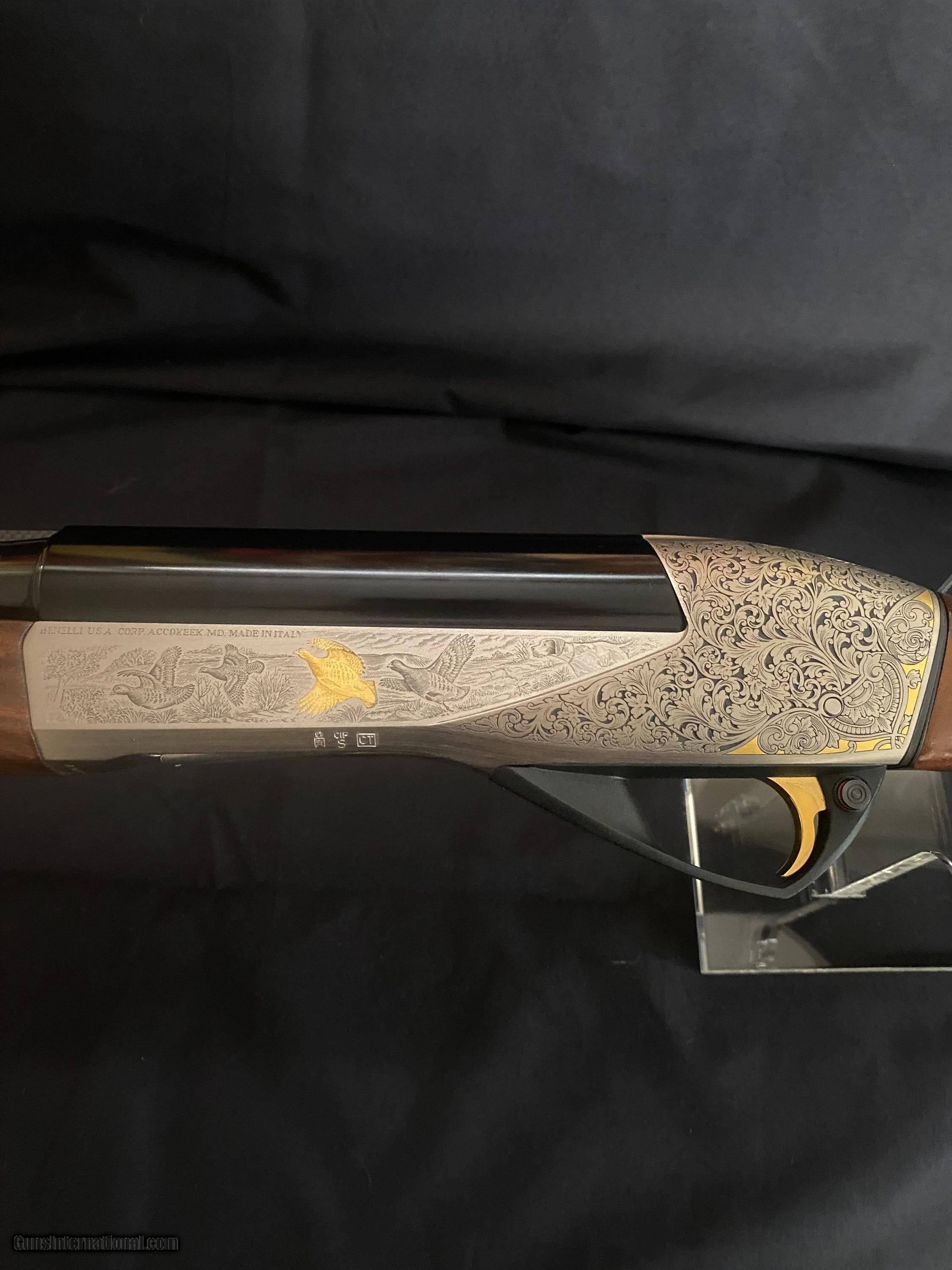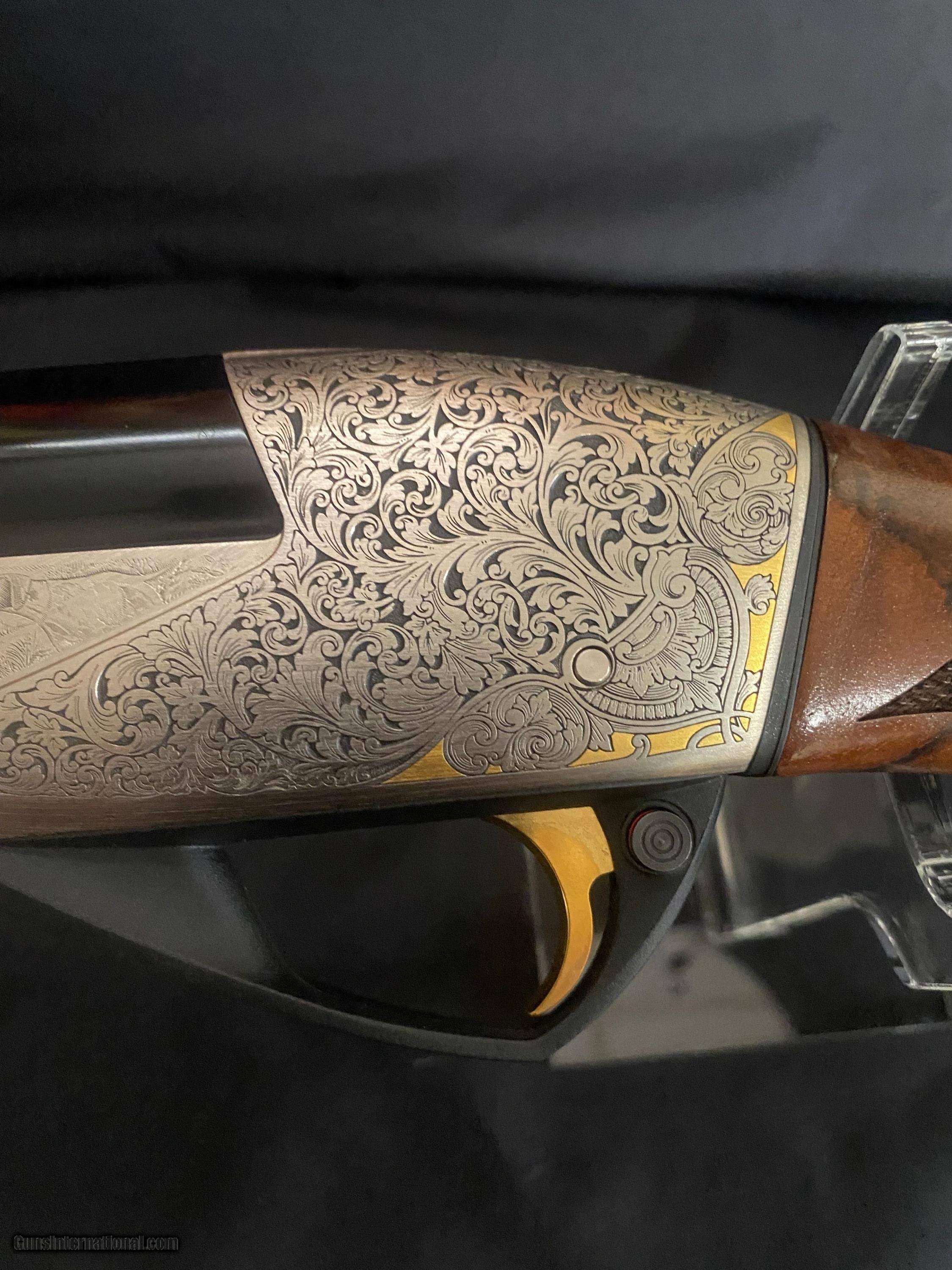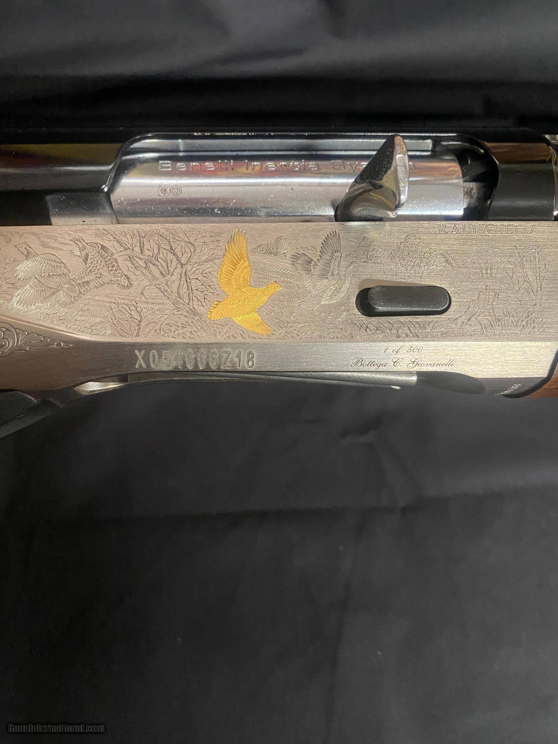 Description: Benelli Raffaello 50th anniversary 20 gauge. This gun is 1 of only 500 made. Absolutely stunning engraving by master engraver Botegga G. Giovanelli. Well figured wood. Complete with factory case, sleeves, accessories and choke tubes. Very lightweight. SOLD Shotgun Gauge: 20 Gauge |