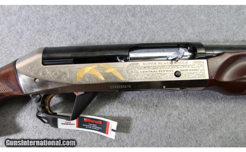 Description: This is a New Limited Edition 1 of 1000 25th Anniversary Benelli Super Black Eagle Central Fly Away Snow Goose with the Original Box SOLD Manufacturer: S/N: CFA0295AXX Caliber Info: 12 Gauge Chambers: 3 1/2 Metal Condition: Excellent Wood Condition: Excellent Bore Condition: Excellent Barrels: 28 Triggers: Gold Stock Dimensions: 14 1/4" LOP Butt Pad: Benelli Rubber Sights: Double Bead with Front Fiber Optic Chokes: Removeable Extras: Original Box Item Location: Lexington, KY |
