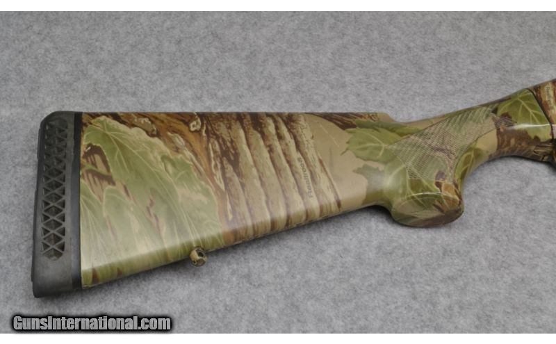 Description: In 1988 the 3 1/2" 12 gauge shell made its first appearance and firearms manufacturers were eager to take advantage of the new load. One of the first to jump on board the 3 1/2 magnum train was Benelli with the Super Black Eagle. It was advertised mainly as a waterfowl gun but it functions just as well with turkeys or smaller game such as squirrels, doves or pheasants. The larger bore also has the option of taking anything from trap loads to serious buckshot making it a gun for all seasons. This example is offered with full coverage Real Tree camo and comes with three choke tubes. All it needs is you. SOLD Manufacturer: S/N U149XXX Caliber Info: 12 Ga. Chambers: 3 1/2" 3-shot. Metal Condition: Very good with only a few light scratches Bore Condition: Clean, bright and shiny Barrels: 26" vent rib. Triggers: Single semi auto action. Stock: Polymer Real Tree camo. Stock Dimensions: 14 1/4" LOP. Fore End: Polymer Real Tree camo. Butt Pad: Benelli recoil pad. Weight: 7 3/4 lbs. Sights: Red high vis front bead and steel mid bead. Chokes: Variable with three choke tubes. Extras: Comes with three choke tubes. modified, improved modified and improved cylinder. Item Location: Columbus, OH |