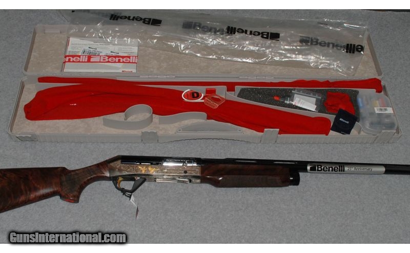 Description: ( Super Black Eagle Pacific Flyway 25TH Anniversary model ) SOLD Manufacturer: New Caliber Info: 12 GA Chambers: 3 1/2 Metal Condition: New in box Wood Condition: New in box Bore Condition: New in box Barrels: 28 Triggers: Thin gold grooved trigger. Stock: Exhibition grade european walnut with checkered pistol grip. Stock Dimensions: LOP 14 Fore End: Exhibition grade european walnut checkered panels. Butt Pad: Factory black rubber pad Weight: 7.65 lbs Sights: Red fiber bead front/Silver bead middle Chokes: Benelli Crio chokes Extras: Comes with factory case all accessories and chokes. Item Location: Lacey, WA |