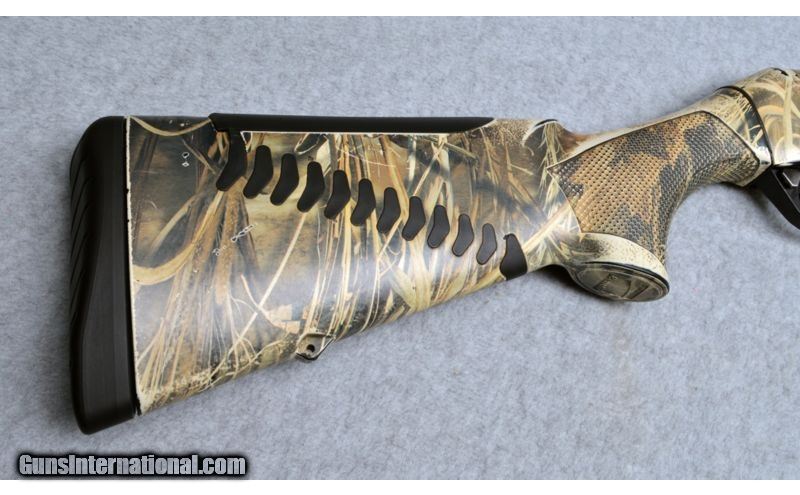 Description: This is a Benelli SBE II chambered in 2 3/4, 3 and 3 1/2 inch 12 ga with full coverage camo that is in good condition for the age of the gun. The barrel is 26 inch vented rib with fiber optic front sight. The gun has been hunted but, is in good condition. SOLD Manufacturer: Newer production. Caliber Info: 12 Ga. Chambers: 2 3/4, 3 and 3 1/2 inch semi-auto. Metal Condition: Good, shows some finish wear from normal use and due to its age. Wood Condition: Good, shows some finish wear from normal use and due to its age. Bore Condition: Bright and shiny. Barrels: 26 Inch vented rib with fiber optic front sight. Triggers: Single. Stock: Camo synthetic with checkered pistol grip. Stock Dimensions: LOP 14 1/2 inches. Fore End: Matching camo forearm with checkering and finger grooves. Butt Pad: Black rubber recoil pad Weight: 7 lbs 12 oz Sights: Fiber optic front sight on vent rib. Chokes: Variable chokes Item Location: Hazelwood, MO |