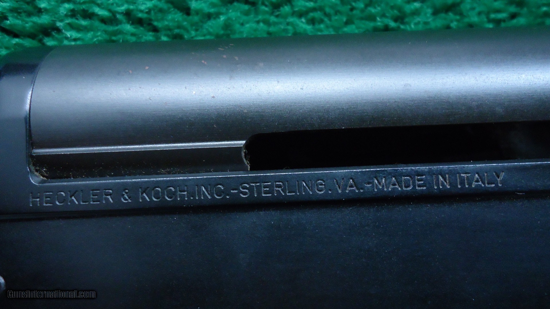 Description: Made by Heckler & Koch, Italy. 12 gauge. 28 inch vent rib barrel with a silver mid bead and a red bar front sight . Made for 2-3/4", 3" or 3-1/2" shells. Blue Finish with Black Composite stock. Benelli black rubber butt pad. One little scuff on the end of the mag tube cap. Great shooter! You won't find a better shotgun Leroy Merz Antique Firearms specializes in antique and vintage Winchesters and other fine American firearms. Since 1965 Mr. Merz has taken part in the world of firearms and has been a contributor to many well known reference books. We have hundreds of additional guns in every price range at our home online. Search for Merz Antiques in google. SOLD |