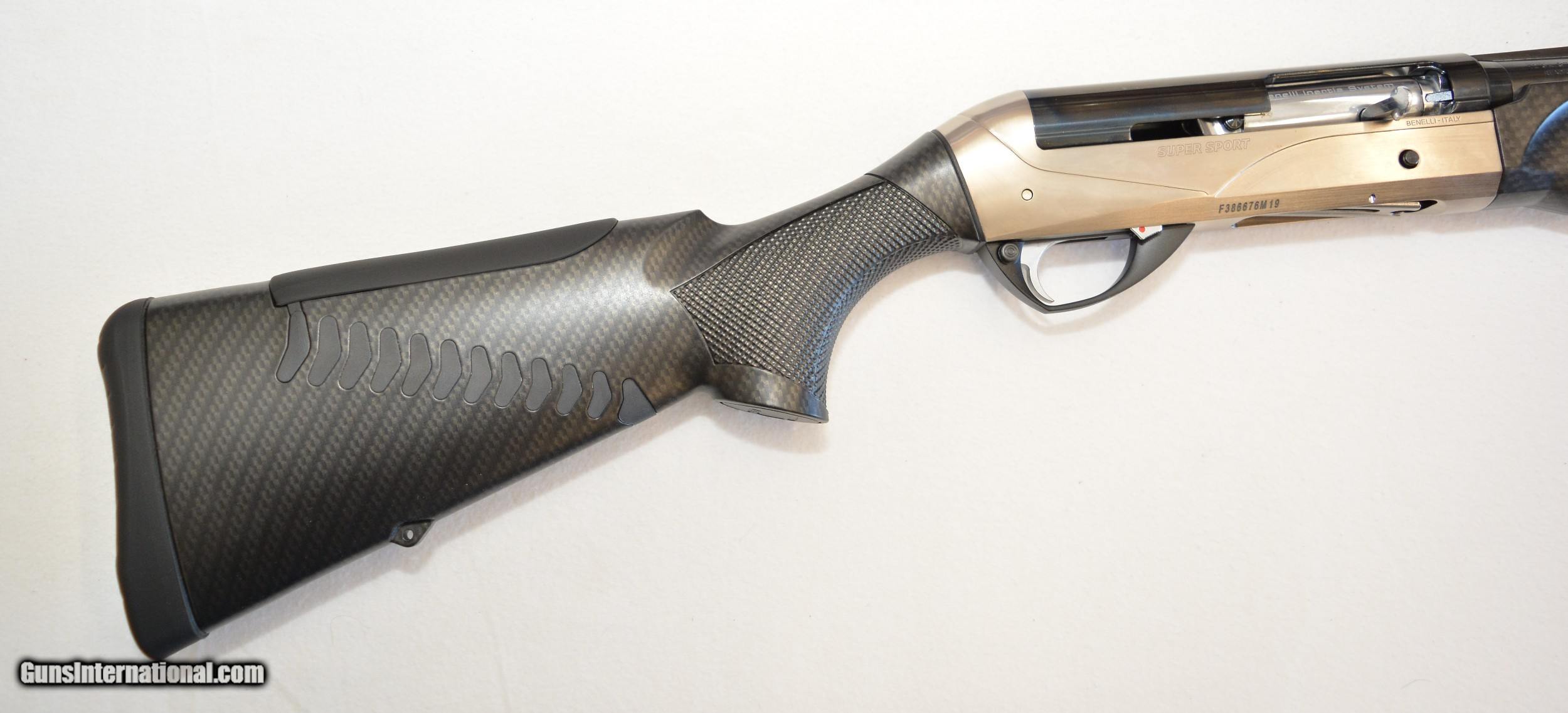 Description: Benelli Super Sport 12ga 30 inch Combining the excellent track record and performance of the Benelli Ethos Sport with new, lightweight, weather-resistant carbon fiber finish for trouble free unmatched performance in any weather. The synthetic stock features the Comfort Tech 3 recoil reduction system teamed with the ported barrel to reduce muzzle jump and reduce recoil. 5 extended choke tubes allow the shooter the flexibility to successfully engage any targets a course designer may present. The vent rib has a mid-bead and red fiber optic foresight are paired to assist is proper eye placement and alignment with the bore for instinctive aiming. Beveled loading port and enlarged operating controls make for ease of operations when in the heat of competition. The Cole’s Gunsmithing location in San Antonio is expanding! I wish to convey a very special and heartfelt Thank you to all our Cole customers. Especially our Texas customers for their enthusiastic support and patronage. You all have been instrumental in this location’s success. We will be buying, selling, trading and performing all your gunsmithing needs. We will still be on Vendors Row, just in Unit 37. That is three units instead of barely one. So please do come see us in our new showroom and gunsmithing center where we not only sell fine guns we care for them too! Same hours Tuesday – Friday 9:30-5:30. Or Saturday through Monday by Appointment. Please call 210-906-0857. Did you know that Cole Gunsmithing is one of the only shotgun dealers in the US that is also a factory authorized service center for the brands we sell? We are the only Beretta shotgun dealer that provides warranty service, so when you buy from us you’ll get priority care should you have any trouble. Additionally when you buy your shotgun from us you get the Cole Experience- superior service, knowledge and expertise backed by 40 years specializing in the repair and customization of fine Shotguns. Build a relationship with your gun dealer and gunsmith all in one place, We have been waiting to serve you! SOLD Shotgun Gauge: 12 Gauge Manufacturer: Benelli Model: Super Sport Serial Number: F386676M19 Barrel Length: 30 Chambers: 3 Condition: New Metal Condition: New Bore Condition: New Barrels: Steel Action: Semi Auto Stock: Carbon Fiber Stock Comb: Adjustable Stock Cast: Right Handed Fore End: Finger Groove Sporting Butt Pad: Factory LOP: 14 3/8 Rib: Vent Rib Finish: Blue Weight: 7lbs 4oz Chokes: 5 Extended Case: Factory Item Location: San Antonio |