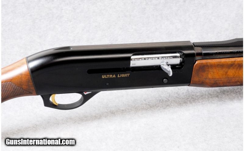 Description: SOLD Caliber Info: 12 gauge. Chambers: 3" chamber. Metal Condition: Black receiver, composite trigger guard, chrome bolt and bolt handle. Wood Condition: Excellent Bore Condition: Excellent. Barrels: 26" barrel with a graphite vent rib. Triggers: Gold trigger. Stock: Dark, satin finish, niecely grained walnut stock with a checkered pistol grip. Stock Dimensions: LOP: 14 1/8". Fore End: Checkered fore end with finger grooves. Butt Pad: Rubber recoil pad. Sights: Red optic front sight and metal center bead. Chokes: Screw-ins. Extras: Comes with the original Benelli case with accessories. Item Location: Kansas City, KS |
