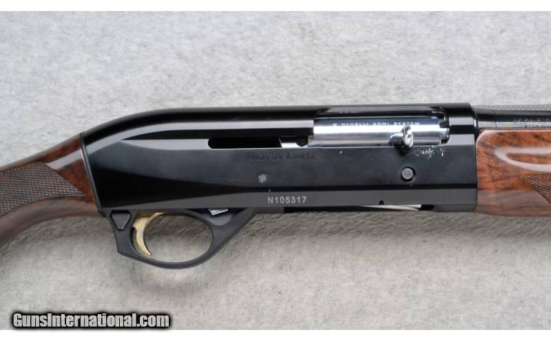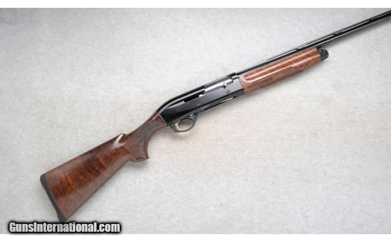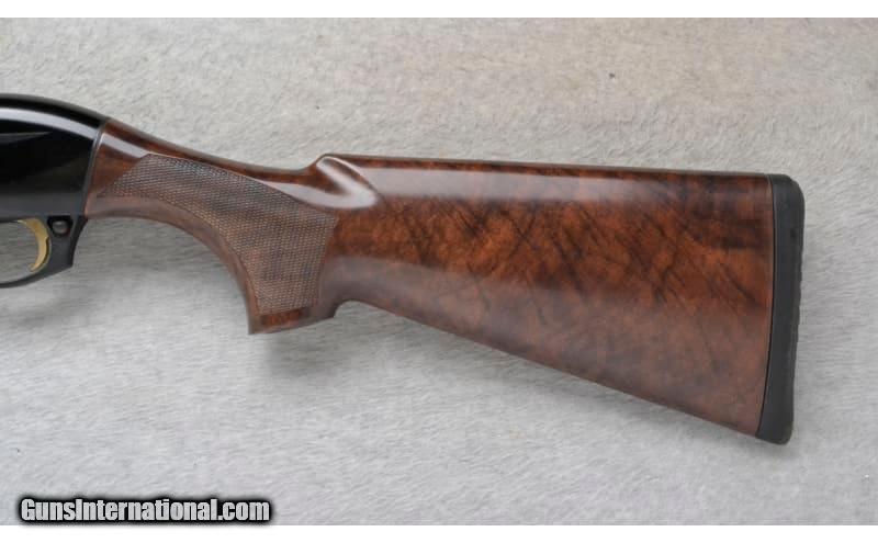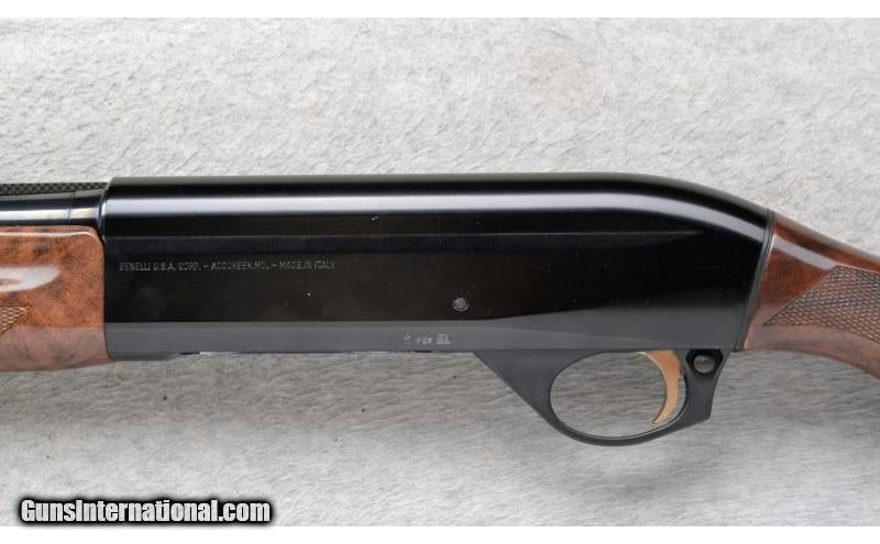Description: This Benelli Model Ultra Light is a right hand semi-auto shotgun in 20 Ga. It has a 24 inch barrel with a carbon fiber ventilated rib. A red high visibility front sight and a metal middle bead sight. With a 3 inch chamber it takes choke tubes and comes with three. The butt stock is a checkered grip walnut pistol grip. The forearm is a checkered grip walnut with finger grooves. 20 Gauge SOLD Chambers: 2 3/4 inch or 3 inch. Metal Condition: Excellent with some marks by the charging bolt handle. Wood Condition: Excellent. A few minor handling marks. Bore Condition: "Clean, bright and shiny. Barrels: 24 inch barrel with a carbon fiber ventilated rib. Stock Dimensions: LOP 14 1/4 inches. Fore End: Checkered grip walnut with finger grooves. Butt Pad: Black rubber recoil pad. Weight: 5 lb. 10 oz. Sights: Red high visibility front and metal middle bead. Chokes: Comes with 3 choke tubes and wrench. Item Location: Richfield, WI |