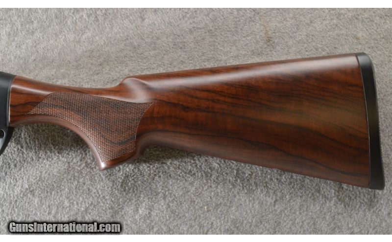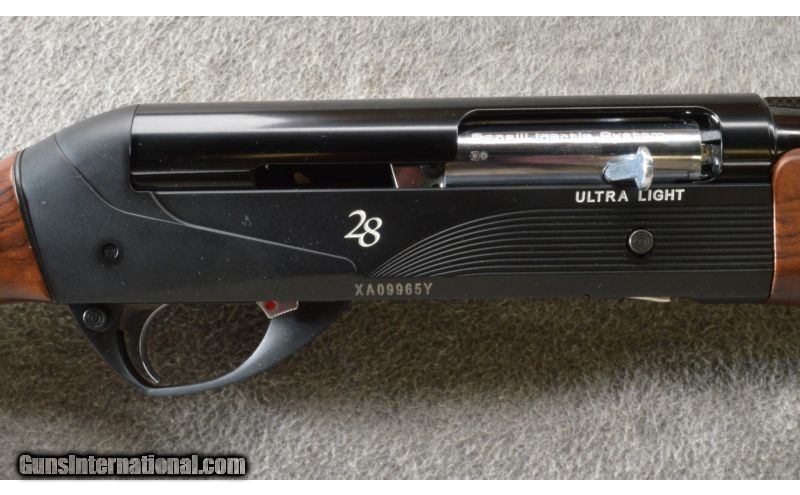 Description: This is a very nice little Benelli Ultra Light 28 gauge shotgun. The walnut inspired WeatherCoat wood stock and matching forearm are free from any marks or dings. The featherweight alloy receiver is new looking and the gloss blue barrel with a carbon-fiber rib is also free from any cosmetic issues. This is a fine looking little shotgun. SOLD Manufacturer: Newer production. Caliber Info: 28 Gauge. Chambers: Semi-Auto 2+1. Metal Condition: As new. Wood Condition: As new. Bore Condition: Bright and shiny. Barrels: 26 inch gloss blue with a carbon fiber rib. Triggers: Single silver color. Stock: WeatherCoat wood stock with a checkered pistol grip. Stock Dimensions: 14 1/4 inch LOP. Fore End: WeatherCoat wood forearm with checkering and finger grooves. Butt Pad: Benelli black rubber butt pad. Weight: Only 5 Lbs. 3 Oz. Sights: Silver mid and a red bar front on the carbon fiber rib. Chokes: Screw in, comes with a flush fit MOD. Item Location: Owatonna, MN |