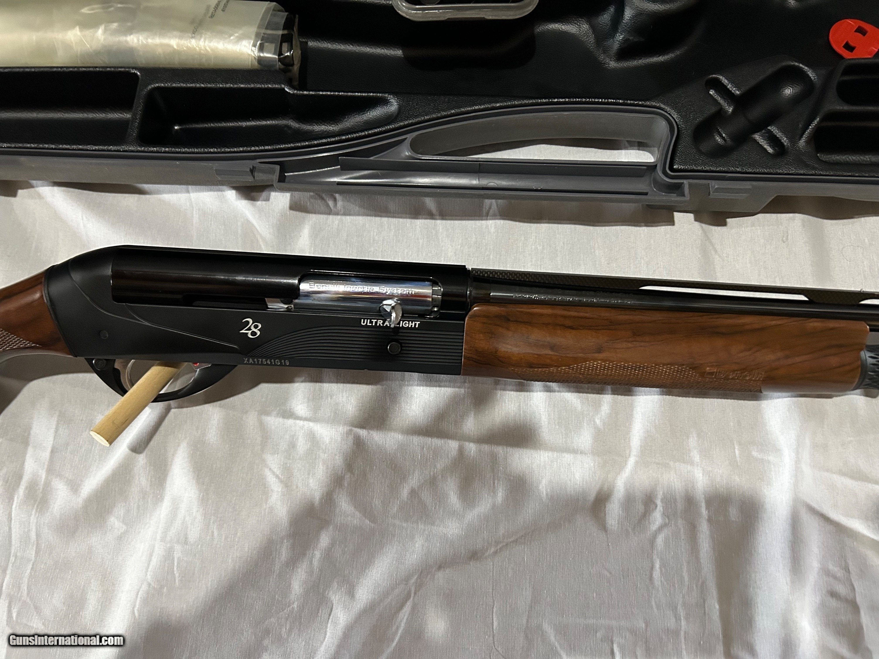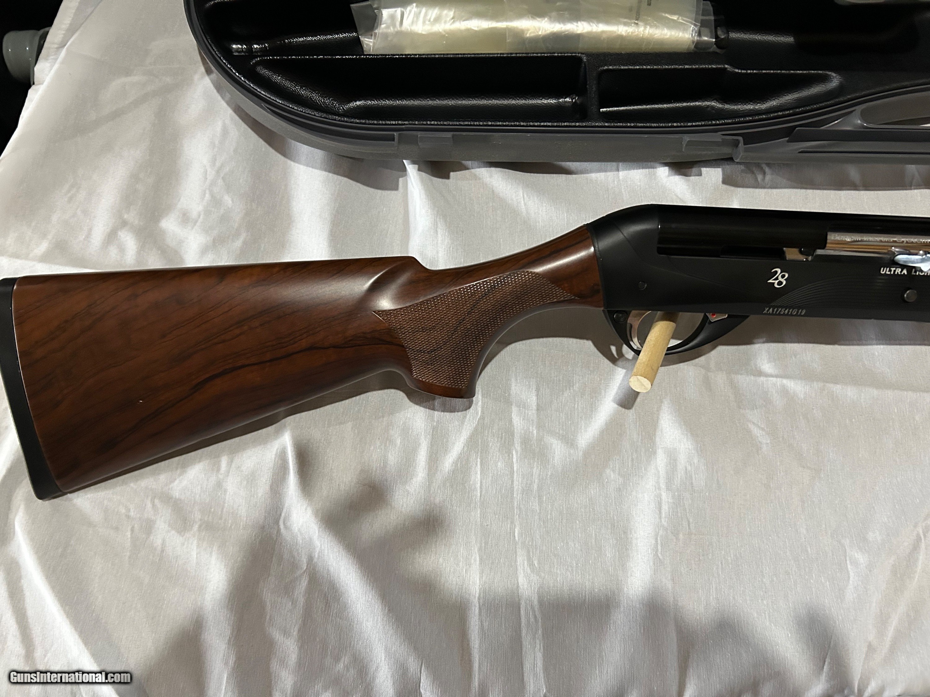 Description: Benelli 28 gauge ultra light it's in super nice shape 26" barrel it's a great little field gun for upland game weigh 5 lb something you can carry around all day Benelli does not make this model anymore it's the same as the ethos 28 gauge but lighter comes with all the shims and chocks and the hard case just like when it was new SOLD Shotgun Gauge: 28 Gauge Manufacturer: Benelli Model: Ultra light Bore: 28 Metal Condition: Excellent Wood Condition: Good Bore Condition: Good Barrels: 26 Action: Auto LOP: 14.5 Rib: Yes Weight: 5lb Chokes: 4 Case: Hard Item Location: Afton NY |