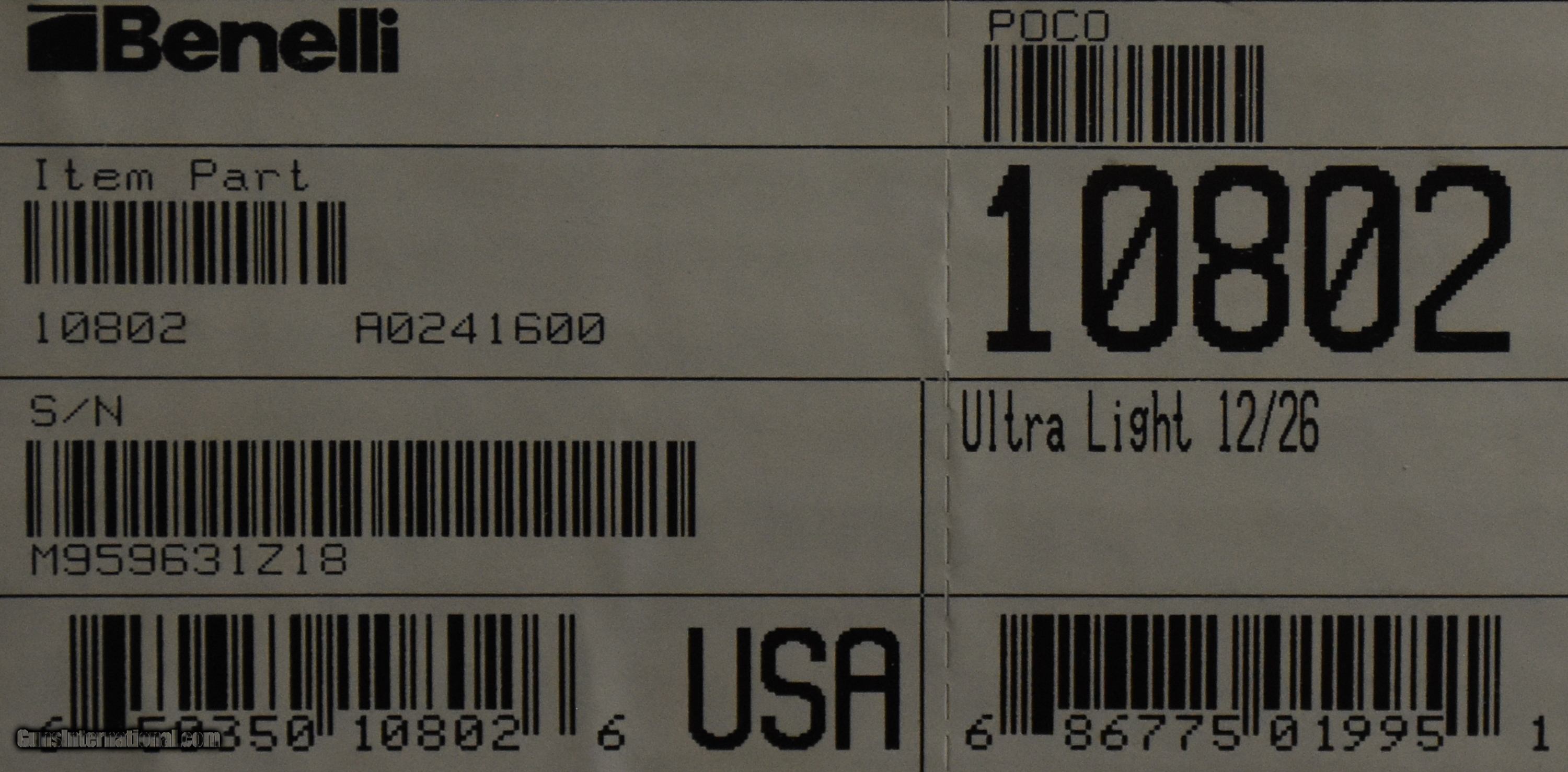 Description: Benelli Ultra Light Satin Walnut 12 Ga 26" Barrel 10802 - Factory New SOLD |