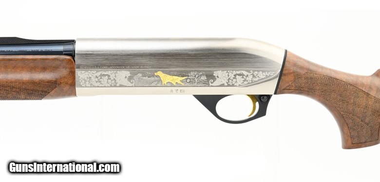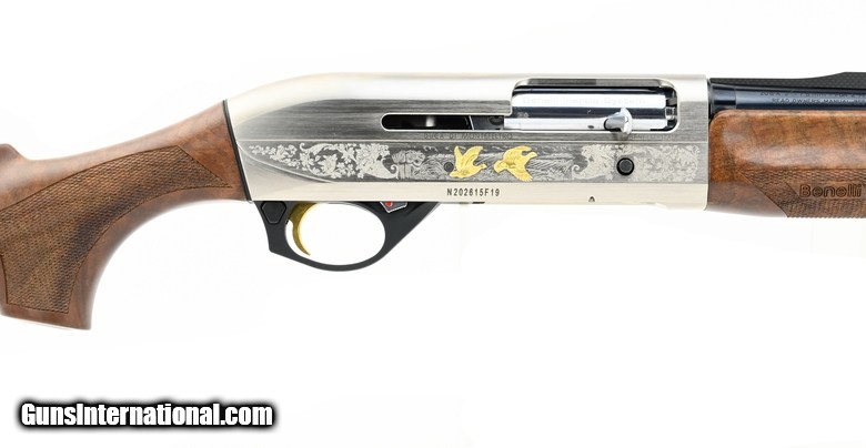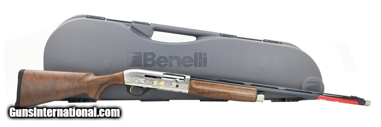 Description: Benelli Ultra Light Silver Featherweight 20 Gauge shotgun. 24” Barrel, satin walnut, nickel/ blue and etched game scene. New.