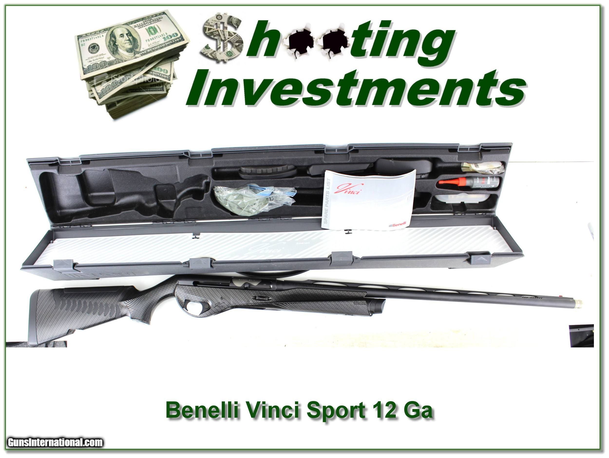 Description: Shooters and hunters, this is a like new Benelli Vinci Sport 12 Ga. I am sure only a few shells fired. It has a 28in barrel and comes as seen in case with papers and all accessories including 5 extended choke tubes. I am selling this one on consignment and as such lay-a-way can’t be used. It does of course have the standard 3-day inspection. Shipping and insurance is $39. Please email me with any questions or larger pictures. (Consign your quality firearms with Shooting Investments for only 12%! Let me know if you have any you would like to sell!) 20-1051 Payment: Payment is by Money Order, Cashiers Check or Personal Check. I can now also accept Credit Cards (MasterCard, Visa, Discover & American Express) with a 3% convenience fee. Shipping: The shipping charge will be listed in each description. It is $39 for most firearms. Some heavy guns or those insured for over $2000 will be higher. Shipments to Alaska and Hawaii are higher because air shipment is required. Most firearms are shipped on Tuesday and Thursday and usually in 5 days of receipt of payment. We package all shipments carefully and insure them. Optics are shipped Priority Mail and most other non-firearm shipments are shipped First Class. Returns: Our return policy is simple. If for any reason you are not pleased with your purchase, you may return your item for a full refund of purchase price. Ammunition cannot be returned. It is important to us that you are happy. Guns cannot be fired or dissembled before returning them and they must be returned in the same condition as received. Notification of a return must occur with-in 3 days of receipt at your dealer. Shipping, convenience and dealer fees are not refundable and are the responsibility of the buyer. Lay-a-way: If needed, we offer a 60 day lay-a-way option on most firearms. It is 1/3 now, 1/3 in 30 days and 1/3 in 60 days. Lay-a-way firearm sales are final and if not completed the first payment cannot be returned. Consigning your firearms with Shooting Investments: We will help you get top dollar for your firearms. While most local guns shops charge 20% or more, our fee is only 12% with a minimum of $75. At your local gun shop it might take months to sell. Selling on-line provides instant access to thousands of interested buyers. You won’t find any other on-line dealer willing to sell your firearms for only 12% or listing every gun on 3 separate s. Selling through an House typically costs the seller 15% and the buyer an addition 15% (so 30%) and you have to wait several months to sell and longer to receive funds. If properly priced, we will sell your firearms in a few weeks. Send us an email or give us a call and we’ll explain how easy it is for you to get top dollar. Trading: Trading for use is really just buying your gun to re-sell. If you have a gun you want to trade, please email a picture and we will let you know what we can give or it. You will always get more if we sell it for you on consignment. Help for California Buyers: We are happy to ship to California. It is the buyer’s responsibility to make sure any item you buy is legal in your state. We are also happy to help with your purchase of a firearm from someone other than us. If you see a gun you would like to buy but the seller can’t or won’t ship to California they can ship to use and we’ll then ship it to your California dealer. The cost for this service is only $30 + shipping. Let us know if we can help! SOLD |