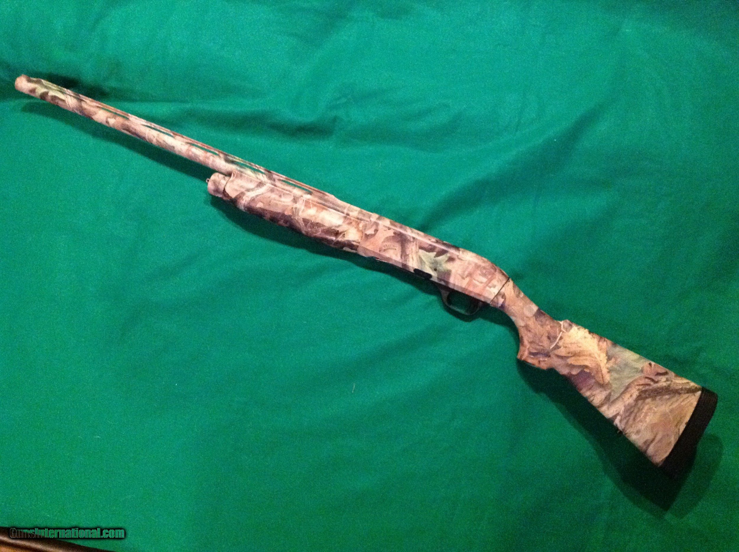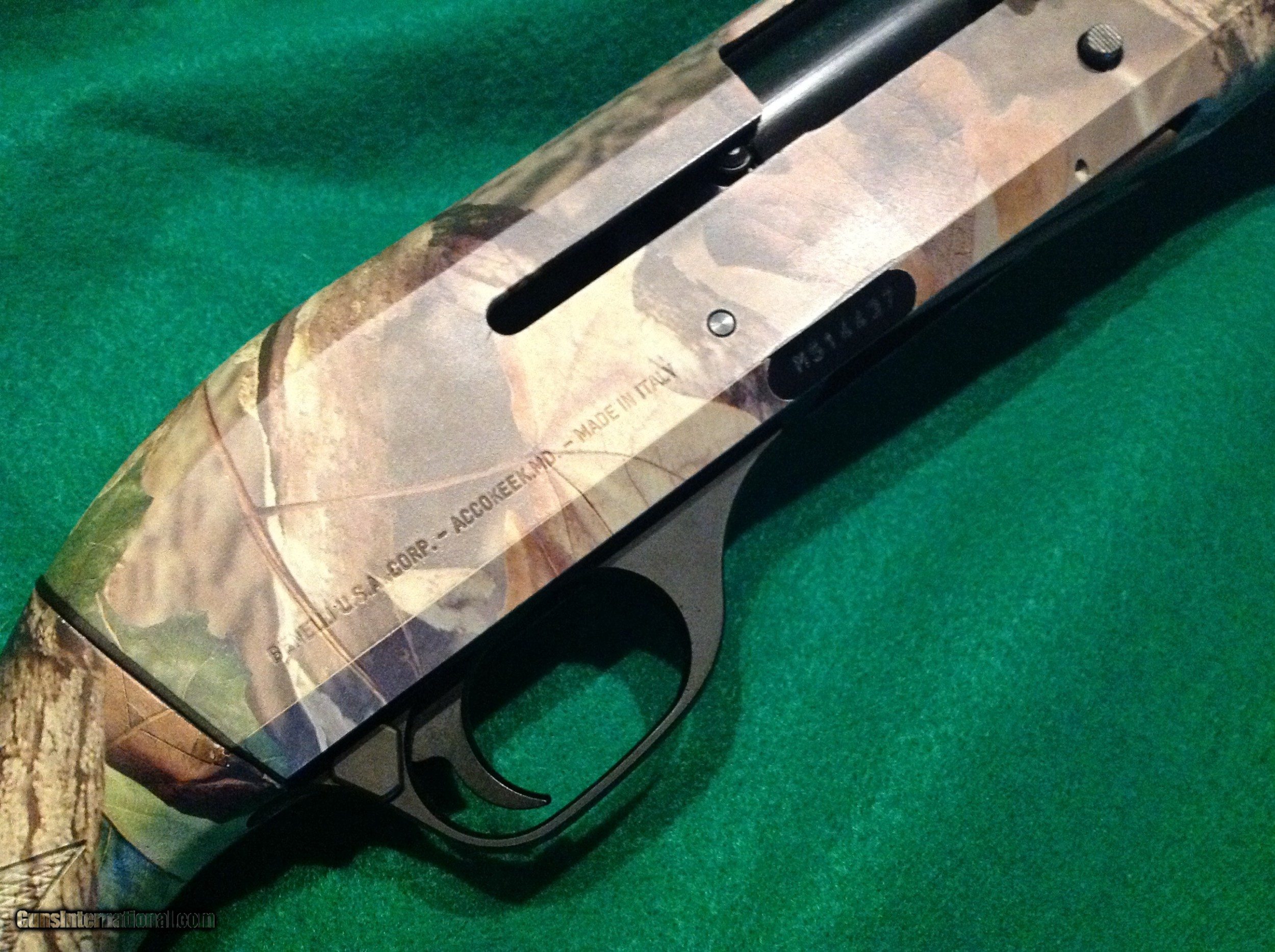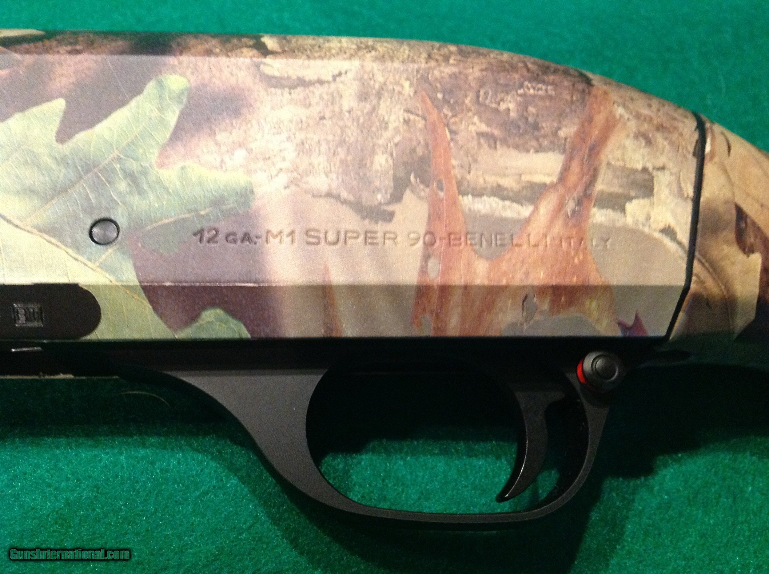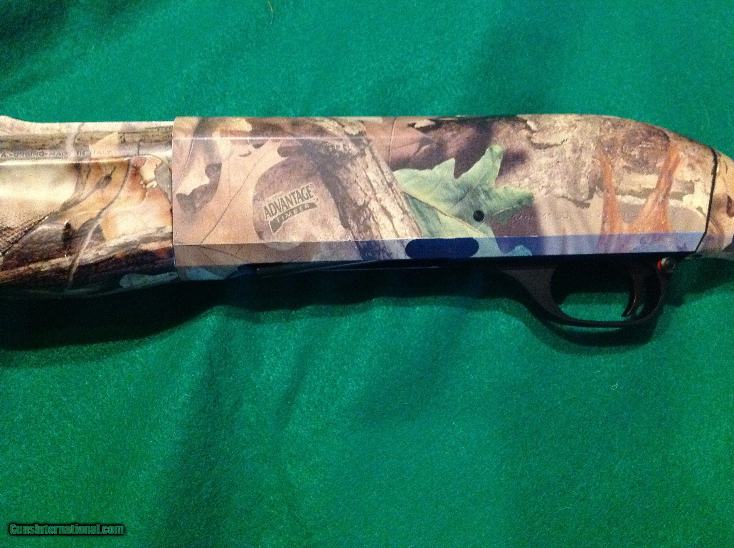 Description: Benelli Super M-1 90 semi auto12 gauge 2 3/4"-3" 24 inch vent rib barrel with red front bead and completed in Advantage Timber Camo. Includes five screw in chokes, stock shims for adjusting drop and cast, in excellent condition same as new in Mfg's original hard case. SOLD Manufacturer: Benelli Model: Super M-1 90 Serial Number: M514437 Bore: 12 Chambers: 2 3/4 -3 Condition: Excellent Metal Condition: Excellent Wood Condition: Excellent Bore Condition: Excellent Barrel Type: 24 Action: Semi Auto Triggers: single Gauge Info: 12 Stock: Advantage Timbr Camo Stock Drop: Adjustable Stock Comb: Adjustable Stock Heel: Adjustable Stock Cast: Adjustable Fore End: Checkered Butt Pad: Limb Saver LOP: 14 1/4 Rib: Vent Finish: Advantage Timber Camo Weight: 6.5 Sights: Front Red Bead Manufacture Date: 2005 Extras: Stock shims Case: Mfg's hard case |