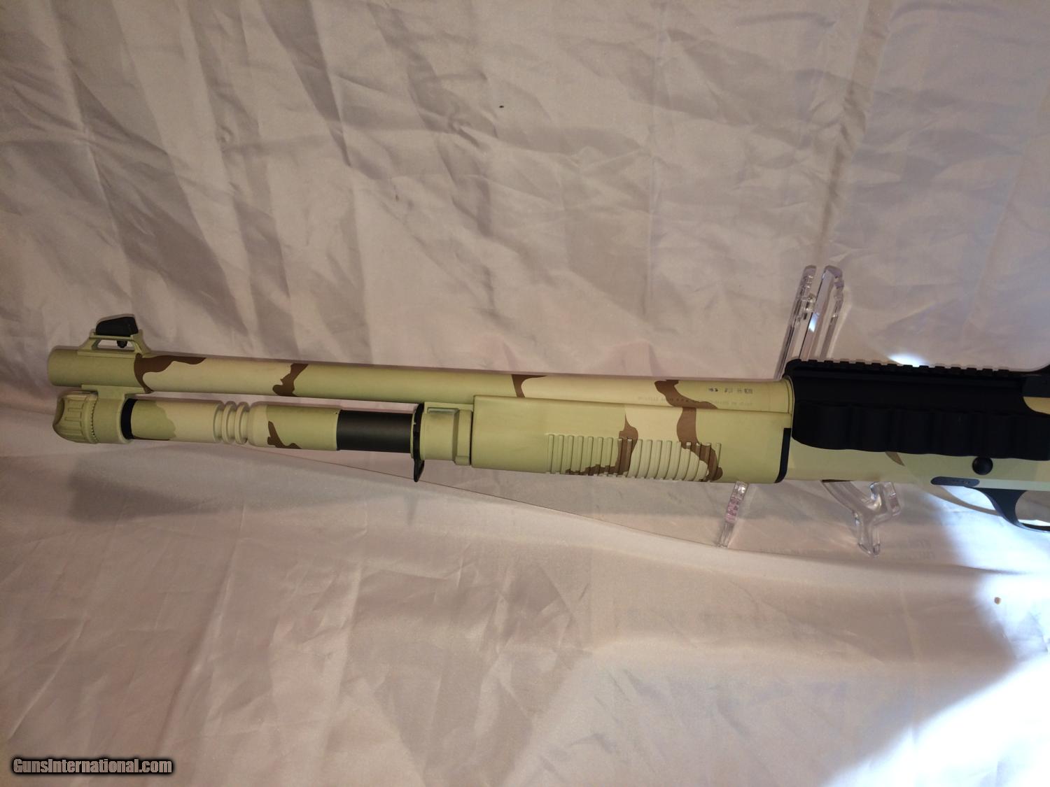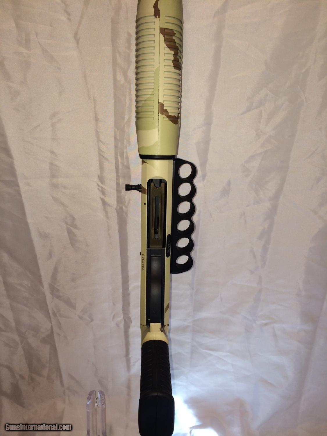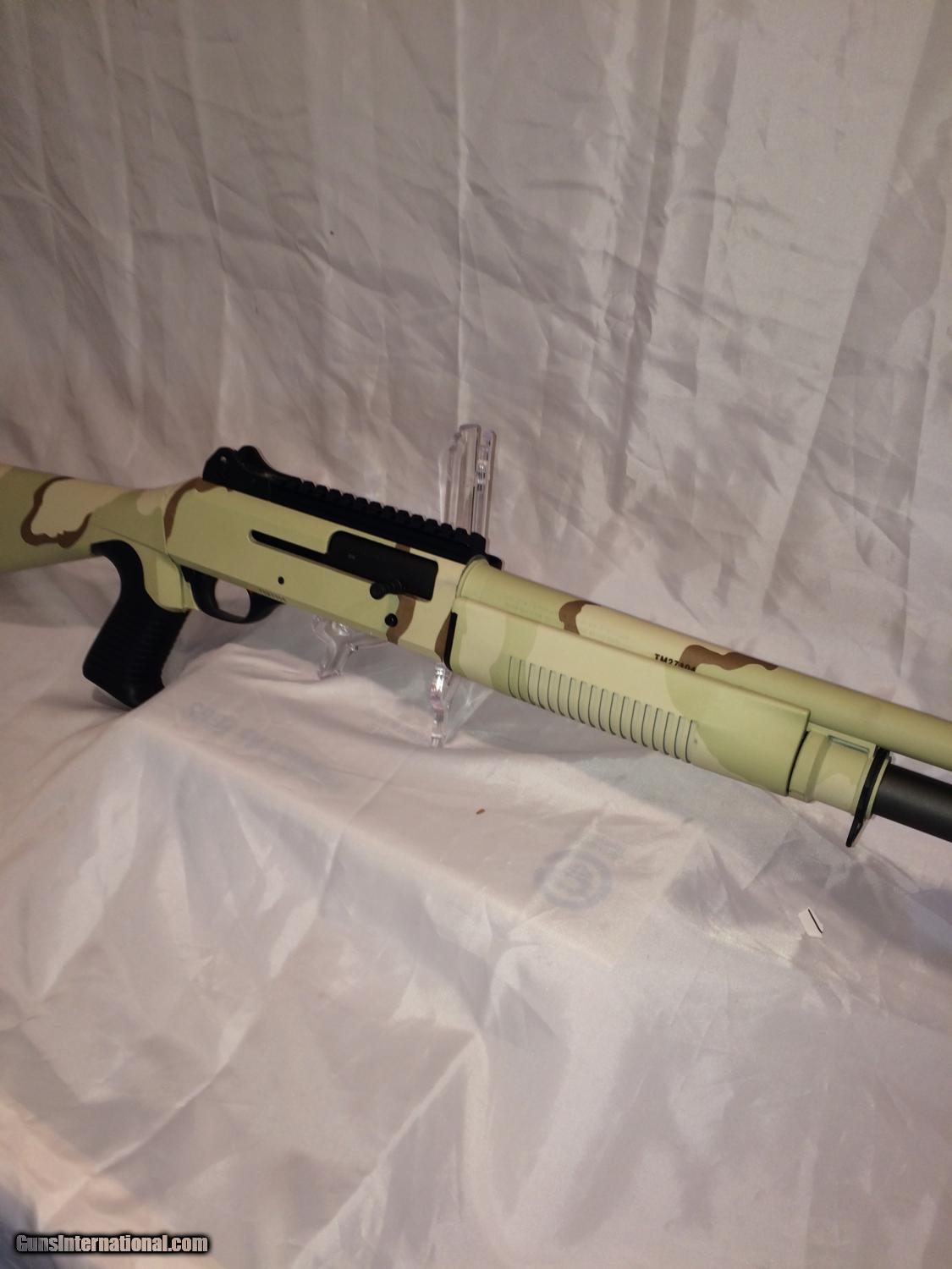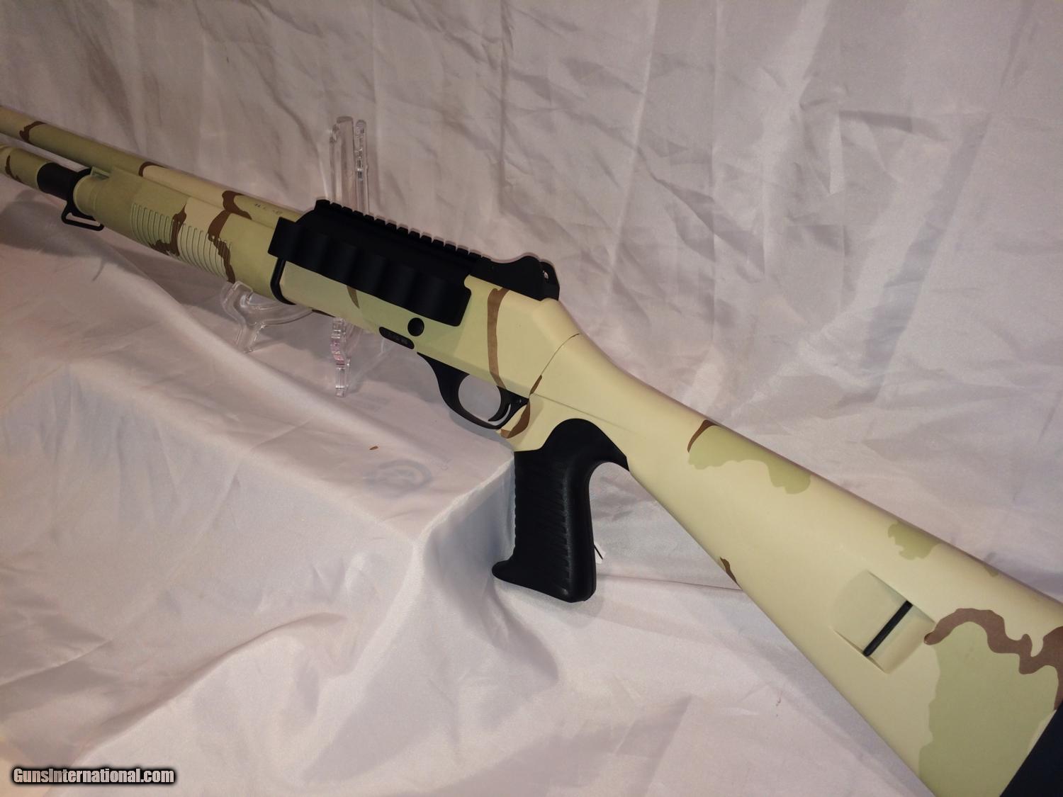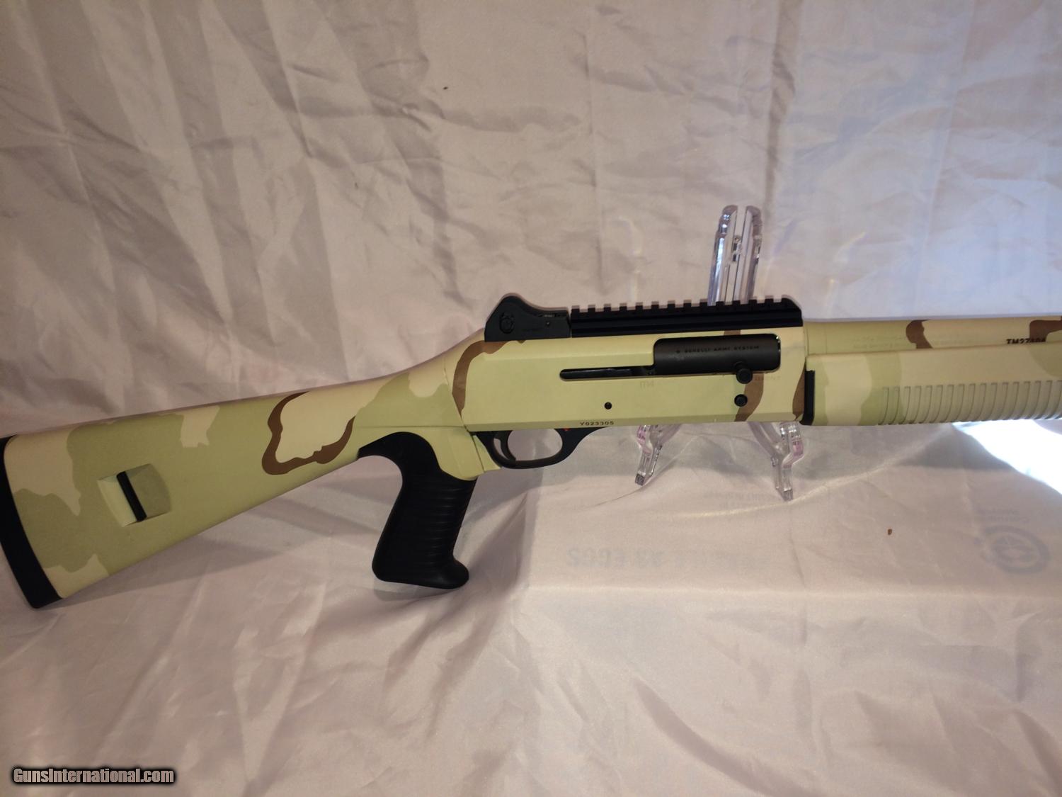 Description: Bennelli M4 tactical shotgun, SN# Y023305 6rd tube fed mag, desert camo,18"barrels,8.8lbs, 2 3/4"-3" chambers, Adjustable rear sight, 6 shot shell holder, as new no box SOLD |