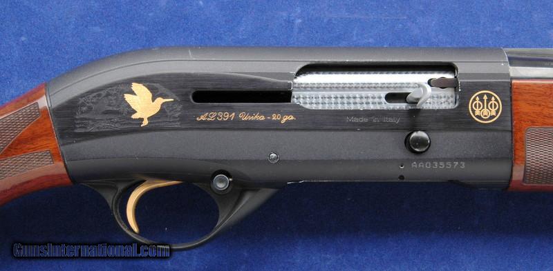 Description: Beretta AL 391 Urika chambered in 20ga 2-3/4” or 3” This 391 features a 26” barrel, vent rib, screw in chokes, front & mid beads, engraved receiver, gold washed birds, jeweled carrier & bolt, checkered walnut stock and a Graycoil recoil pad system. This is a very nice shogun that looks to have had little use but does have some handling marks on the stock. It has a LOP of 13-7/8” and comes with one Full choke tube. SOLD |
