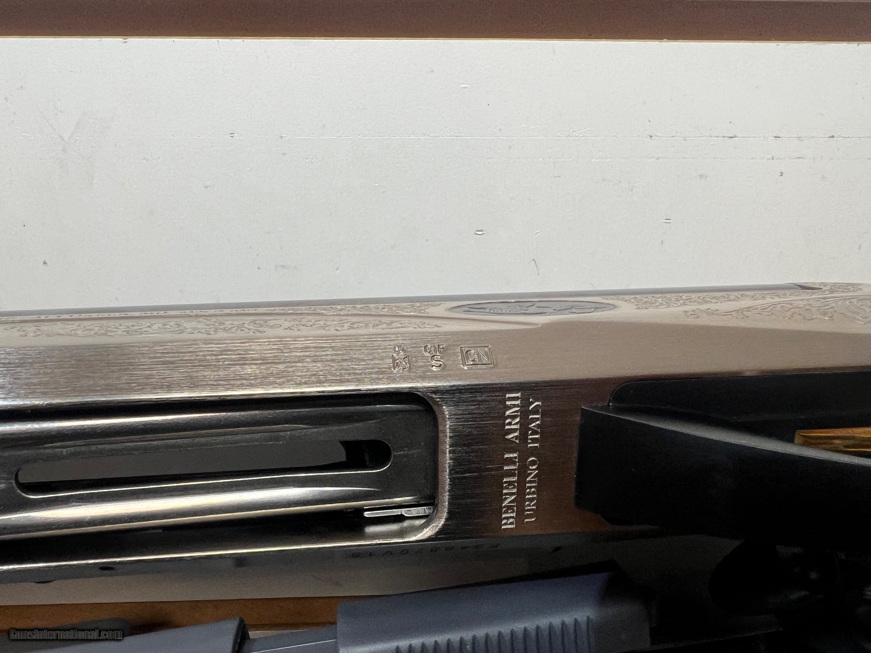 Lightly used Benelli Legacy Sporting Semi-Auto Shotgun 10645, 12 Gauge, 30", 3" Chmbr, AA Grade Satin Walnut, Ported luggage case