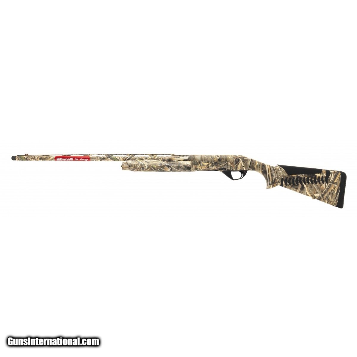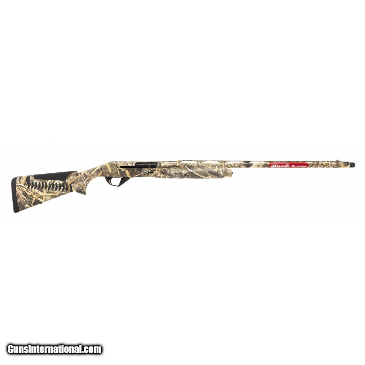 Description: "Semi-automatic field shotgun with 28"" vent rib barrel, 14.375"" length of pull and red fiber optic front sight. 3"" shells only. Realtree MAX-5 camo finish., and synthetic stock and handguard. New. UPC: 650350103458 SOLD |