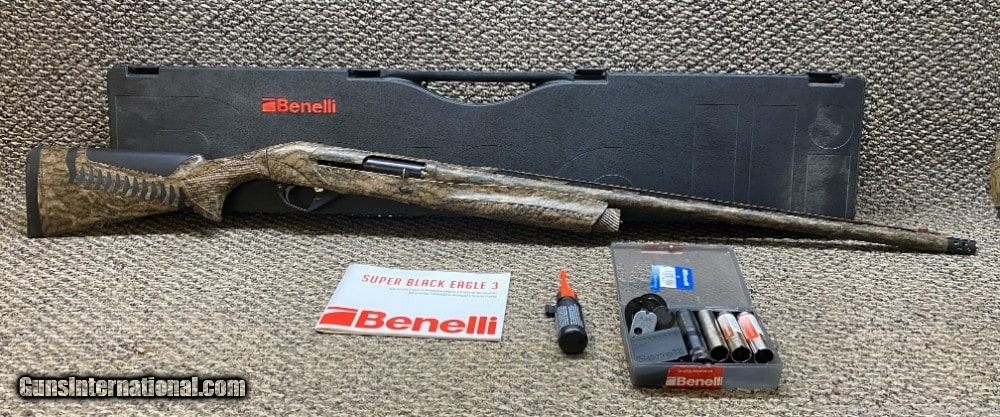 Description: Guns Listing ID: 1053888 Benelli SBE 3 12GA 3 ½” Mossy Oak Bottomland Finish Synthetic 27.5\" BBL 3+1 This listing is for a USED Benelli SBE 3 12GA 3 ½” Mossy Oak Bottomland Finish Synthetic 27.5\" BBL 3+1. This is a used gun, it has been fired and will have residue present. This Benelli SBE 3 is chambered in 12 gauge, it will hold 3 shells in the magazine tube, and it will chamber up to 3 ½ inch shells. This shotgun comes with 27.5 inch barrel. It comes equipped with a front fiber optic sight, and it comes installed with an extended H3 PatternMaster choke tube. Some of the finish has worn off on the barrel and receiver from use. The action appears to be in good condition, the finish appears to be in overall good condition, and the bore appears to be in good condition. This shotgun comes with extra stock shims, extra stock plates, a choke tube tool, an owner’s manual, and a Benelli hard case. This shotgun also comes with an IC, a Full, a Modified, an IM, and a cylinder choke. This would be a great hunting shotgun. ** DISCLAIMER** THIS FIREARM HAS NOT BEEN TEST FIRED*** SOLD Manufacturer: BENELLI Model: SBE 3 Condition: Used - Non-Certified Barrels: 27.5 BARREL Gauge Info: 12 GA Finish: MOSSY OAK BOTTOMLAND |