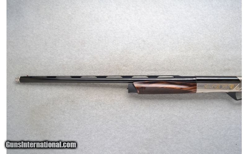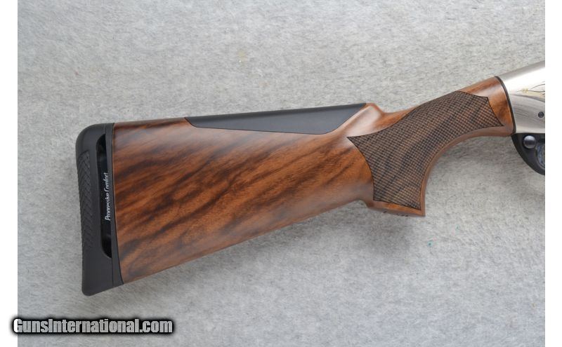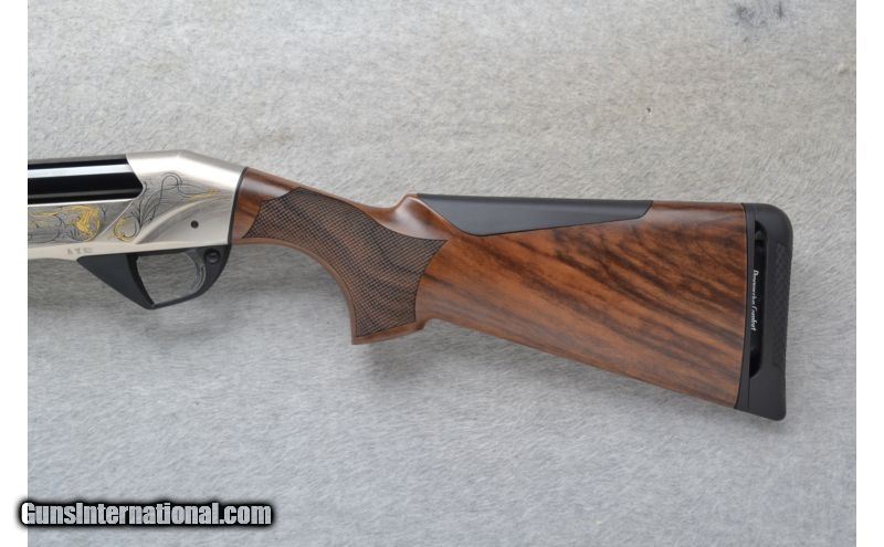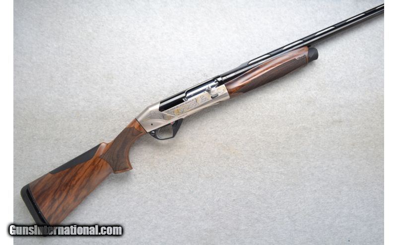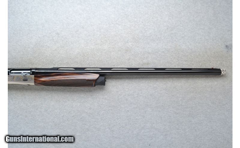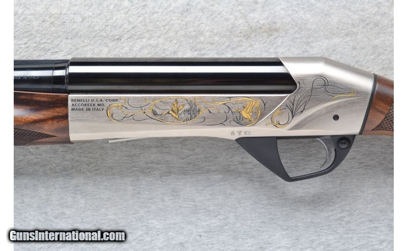 Description: This Benelli Model Super Black Eagle 3 is a right hand semi-automatic 12 Ga. shotgun. It is a 2019 Ducks Unlimited Edition. It has a 27.5 inch barrel with a ventilated rib. A red front sight and a metal middle bead sight. The butt stock is a checkered walnut pistol grip with a black rubber comb that is changeable. The forearm is a checkered grip walnut with finger grooves. It has an Inertia Driven System. The drop and cast are adjustable. The butt pad is a Progressive Comfort black rubber. The receiver sides are nicely engraved in black and gold ducks in flight. SOLD Caliber Info: 12 Ga. Chambers: Semi-Auto 2 3/4 inch, 3 inch or 3 1/2 inch. Metal Condition: Excellent. Wood Condition: Excellent. Bore Condition: Bright and shiny. Barrels: 27.5 inch blued barrel with a ventilated rib. Stock: Checkered walnut pistol grip. Drop and cast adjustable. Black rubber comb is changeable. Stock Dimensions: LOP 14 1/4 inches. Fore End: Checkered walnut with finger grooves. Butt Pad: Benelli black rubber recoil pad. Progressive Comfort. Weight: 7 lbs. 4 oz. Sights: Red high visibility front. Metal middle bead. Chokes: Benelli Criochoke. Comes with F, M & IC tubes. Extras: Comes in a Benelli hard case with Owners Manual, 3 choke tubes, drop and cast adjustment spacers, gun lock and a tool. Item Location: Richfield, WI |