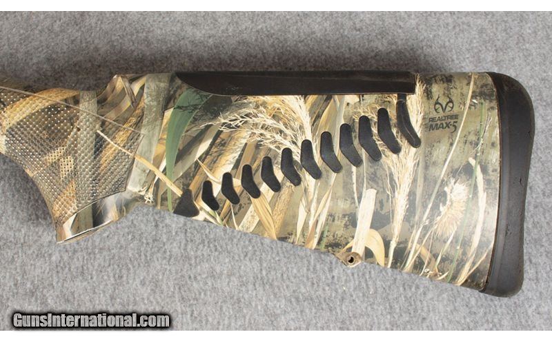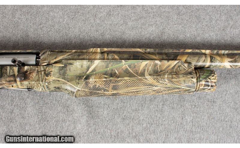 Description: Overall condition is good to fair. The shotgun shows heavy signs of field use and handling; as well as a patch where the camo wore off right down to the primer. The metal is clean with some signs of use. Bore is excellent with bright shine and no deformities. 12 Gauge SOLD Chambers: Semi-automatic fed from a tubular magazine. Metal Condition: Good. Wood Condition: Stock is in fair to good condition. Bore Condition: EX Barrels: 28" with RealTree Max-5 camo and ventilated rib. Triggers: Blued metal with smooth surface. Stock Dimensions: 14" LOP Fore End: Synthetic with Max-5 camo and textured grip area. Butt Pad: Black rubber pad. Weight: 7.5 lbs Sights: Fiber optic front side with mid bead Chokes: Barrel is threaded for Criochokes. See Extras for details. Item Location: East Hartford, CT |