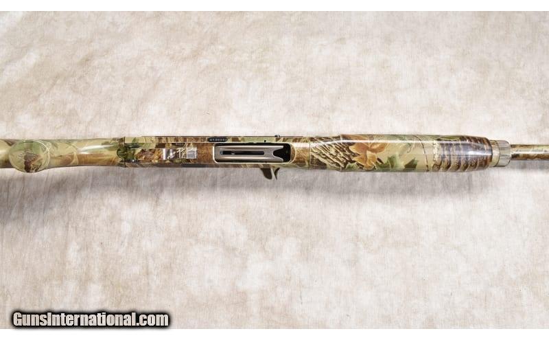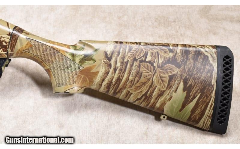 Description: The Benelli Super Black Eagle has proven to be a benchmark of reliability. This one has full Realtree camouflage coverage with a few wear marks. At 7-1/2 pounds it will be at home in the duck boat and the pheasant field. 12 Gauge SOLD Chambers: "4+1 capacity, 12 gauge, up to 3-1/2 inches Metal Condition: Very good. Wood Condition: Very good Bore Condition: Shiny and bright Barrels: 25-1/2 inches Triggers: Factory trigger Stock Dimensions: LOP: 14-1/2 inches Fore End: Matching camouflage beavertail. Butt Pad: Soft rubber pad. Weight: 7 lb - 7 oz Sights: Ventilated rib with fiberoptic and silver beads. Chokes: Screw-in chokes Item Location: Rogers |