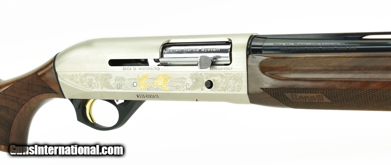 Benelli Duca di Montefeltro 20 Guage shotgun. Duca di Montefeltro fancy autoloader with 26” barrel, gold inlays, and deluxe wood. Excellent condition.